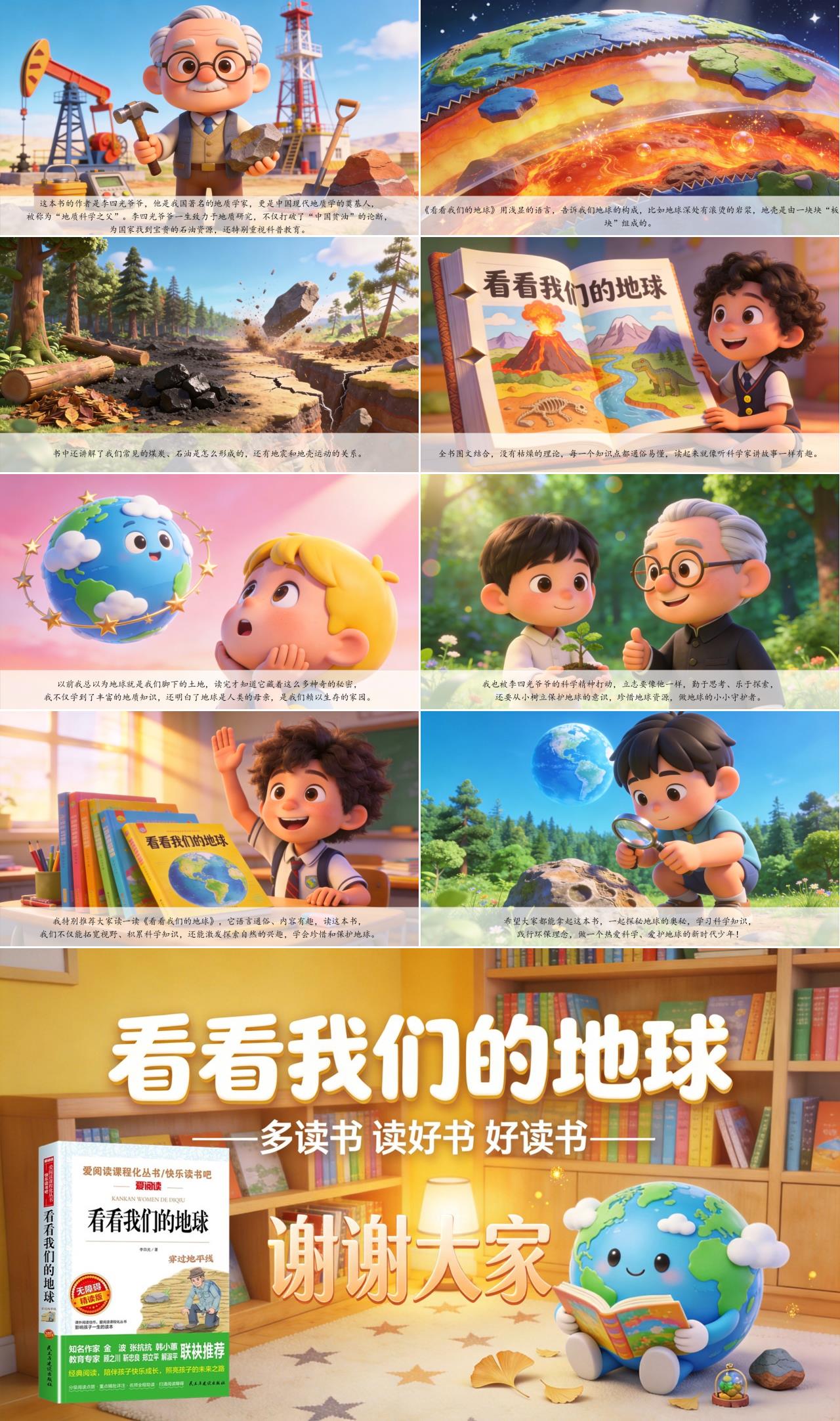 我特别推荐大家读一读《看看我们的地球》,它语言通俗、内容有趣,字数也适合我们小学生课前三分钟分享和日常阅读。读这本书,我们不仅能拓宽视野、积累科学知识,还能激发探索自然的兴趣,学会珍惜和保护地球。希望大家都能拿起这本书,一起探秘地球的奥秘,学习科学知识,践行环保理念,做一个热爱科学、爱护地球的新时代少年!我的分享完毕,谢谢大家!