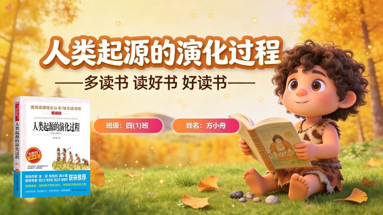 尊敬的老师、亲爱的同学们,大家好!今天,我要给大家分享一本充满科学奥秘的好书——《人类起源的演化过程》。它就像一把神奇的钥匙,带我们揭开人类起源的神秘面纱,探寻我们祖先的足迹,既能学到丰富的科普知识,又能激发我们探索科学的兴趣,特别适合我们小学生阅读。