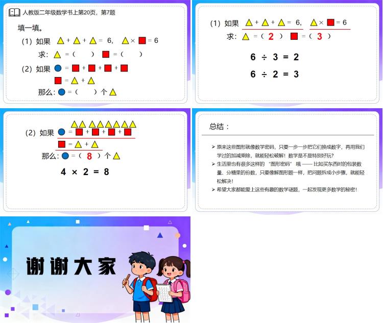 原来这些图形就像数学密码,只要一步一步把它们换成数字,再用我们学过的加减乘除,就能轻松破解!数学是不是特别好玩?
