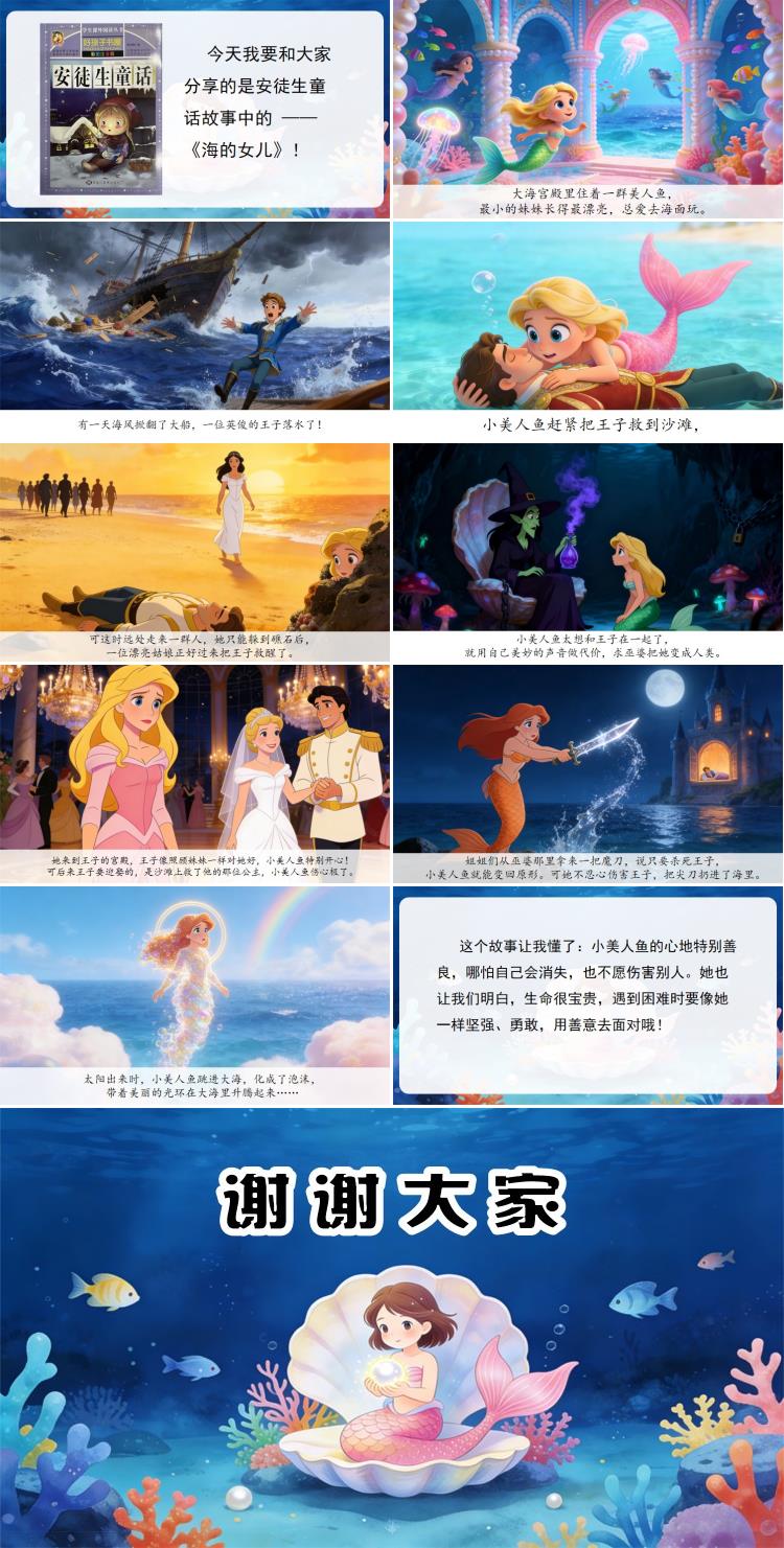 大家好!我是三年级一班的众晨星,今天我要和大家分享的是安徒生童话故事中的 ——《海的女儿》!