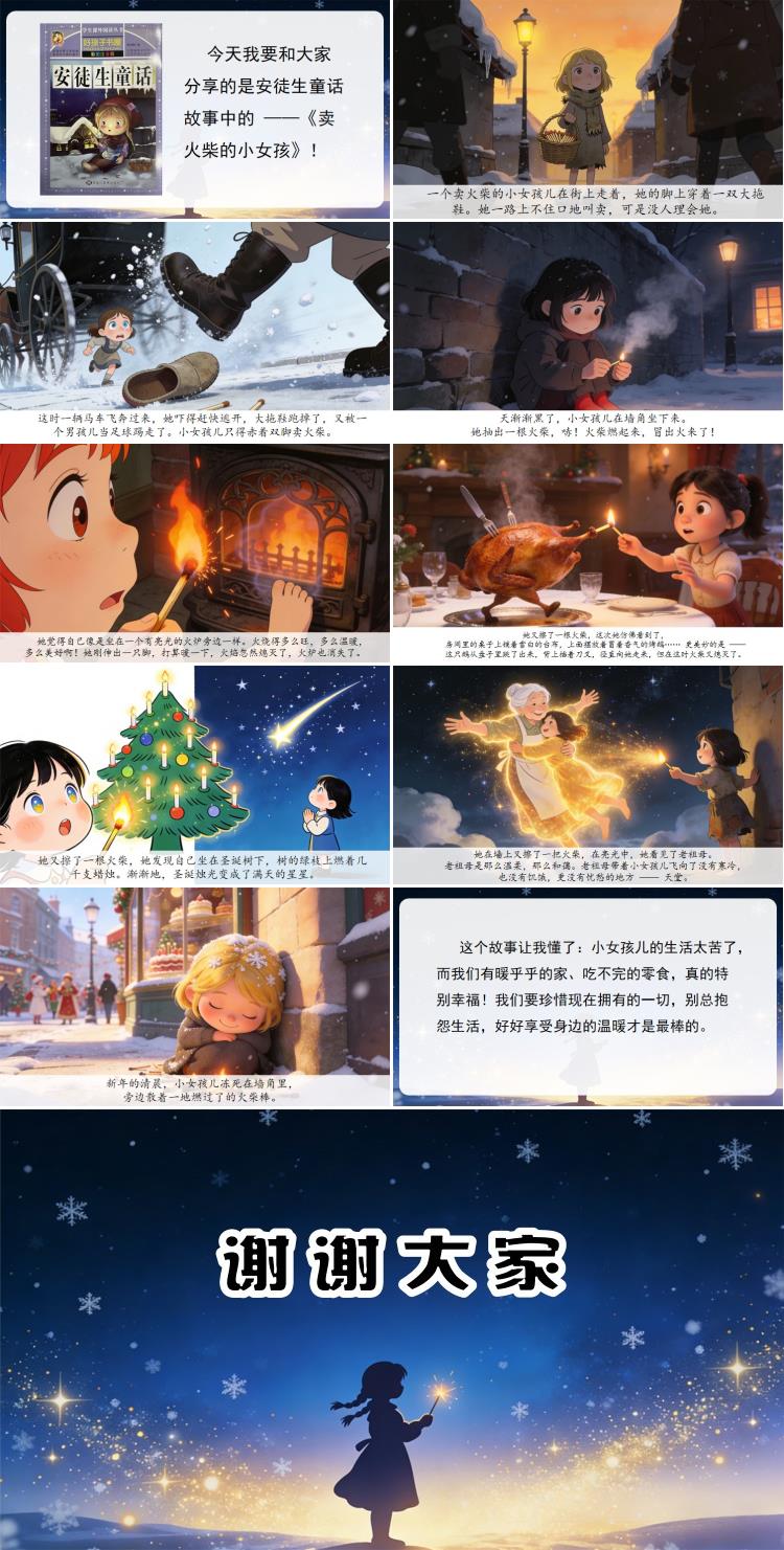 大家好!我是三年级一班的众晨星,今天我要和大家分享的是安徒生童话故事中的 ——《卖火柴的小女孩》!