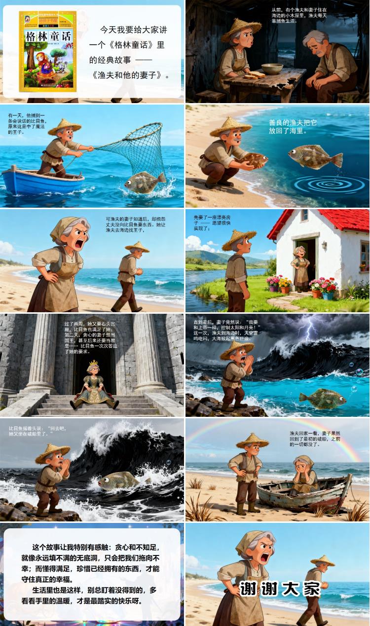 大家好!今天我要给大家讲一个《格林童话》里的经典故事 ——《渔夫和他的妻子》。