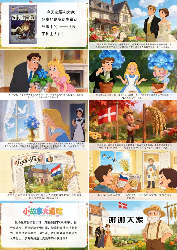大家好,我是三年级一班的众晨星,今天我要和大家分享的是安徒生童话故事中的 ——《园丁和主人》!