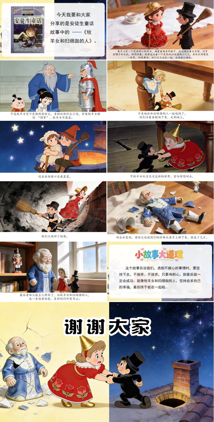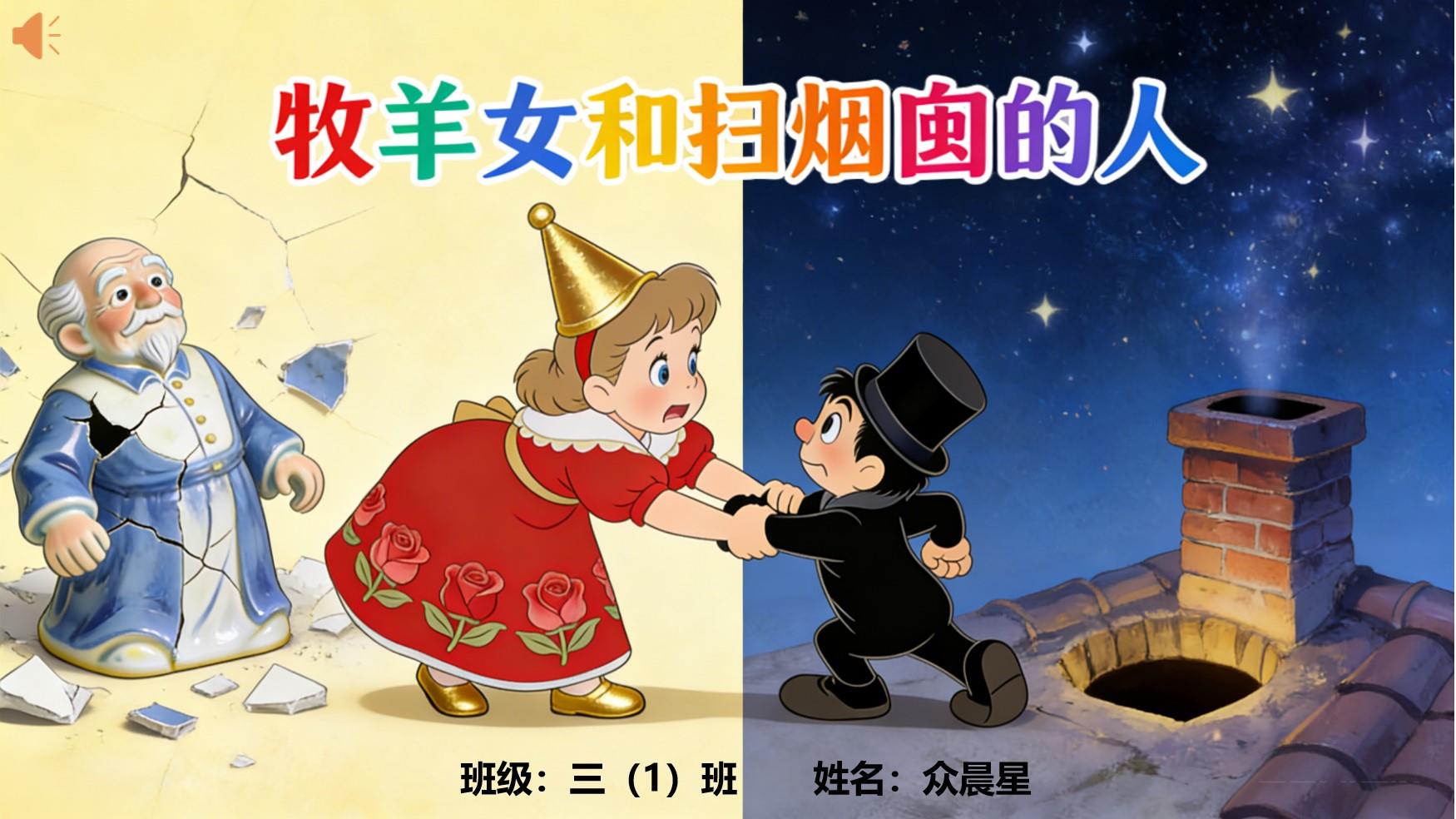 大家好,我是三年级一班的众晨星,今天我要和大家分享的是安徒生童话故事中的 ——《牧羊女和扫烟囱的人》。