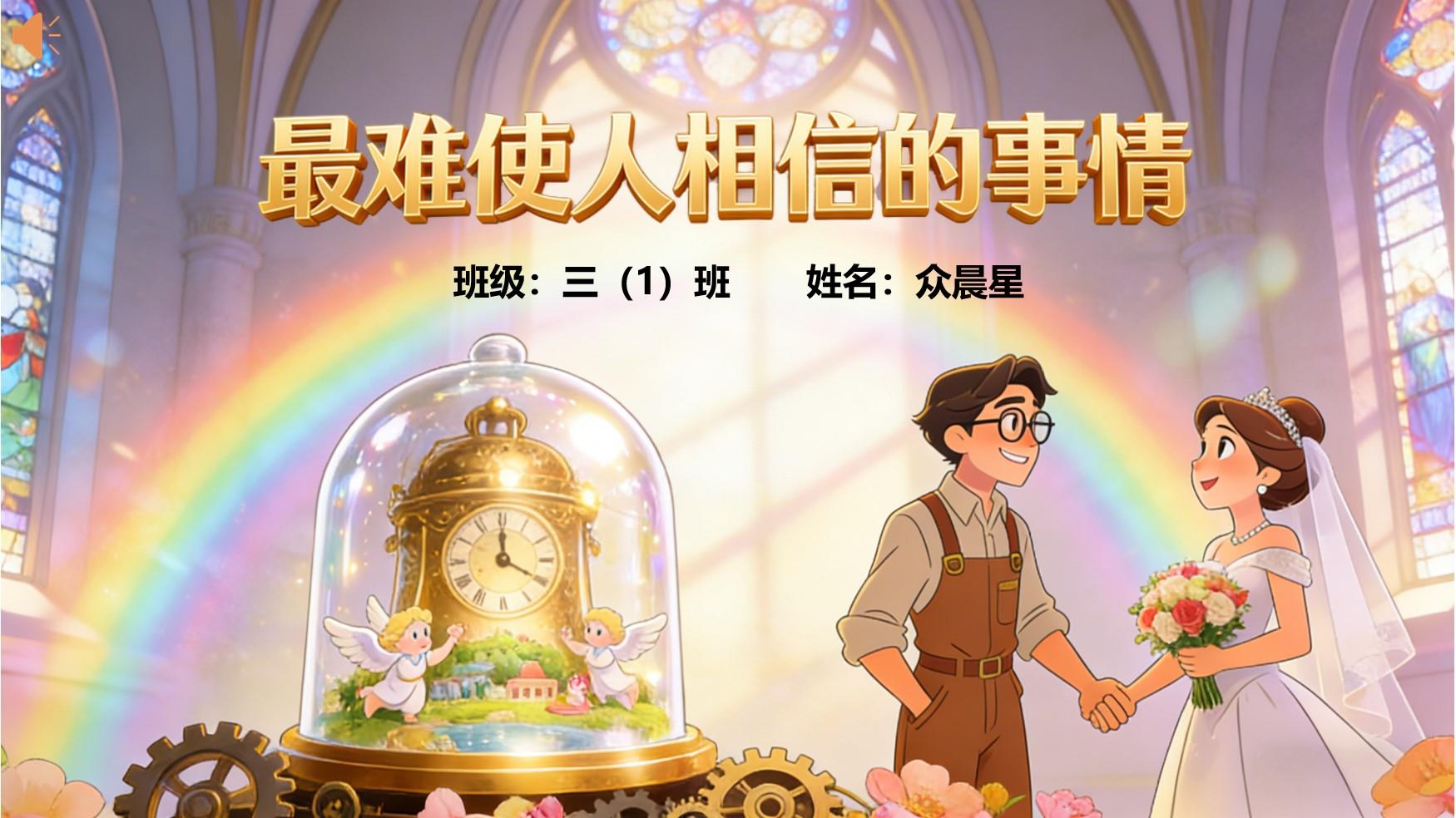 大家好,我是三年级一班的众晨星,今天我要和大家分享的是安徒生童话故事中的 ——《最难使人相信的事情》。