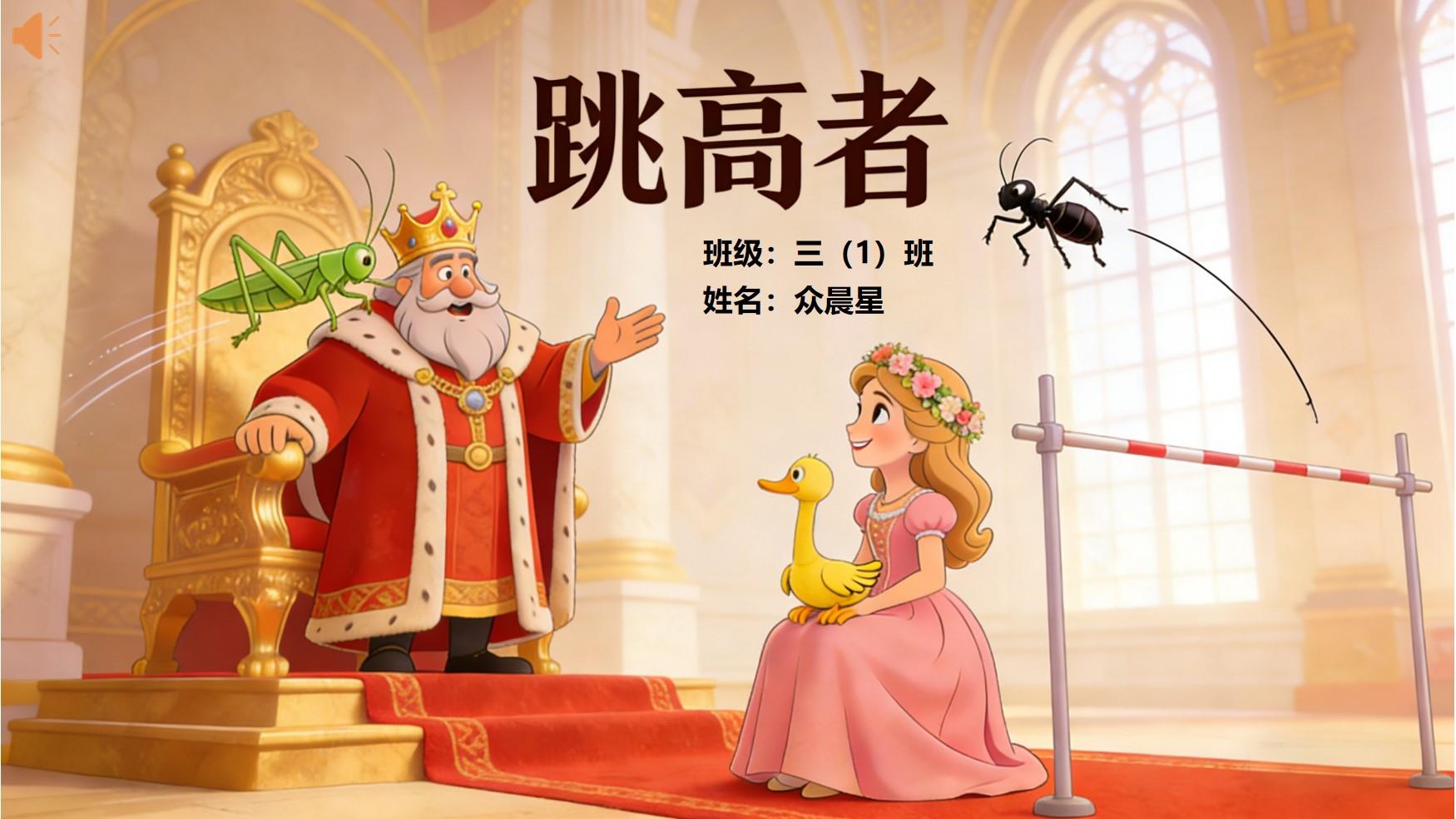 大家好,我是三年级一班的众晨星,今天我要和大家分享的是安徒生童话故事中的 ——《跳高者》。