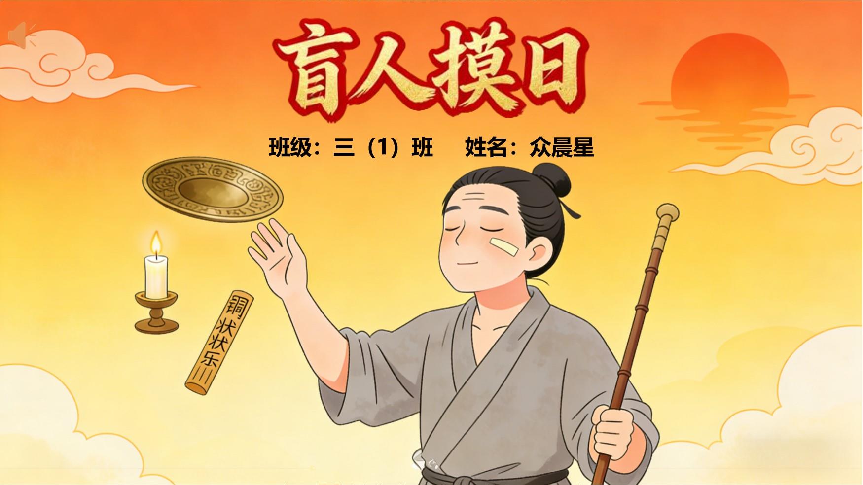 大家好,我是众晨星。今天,我要给大家分享的寓言故事是《盲人摸日》。