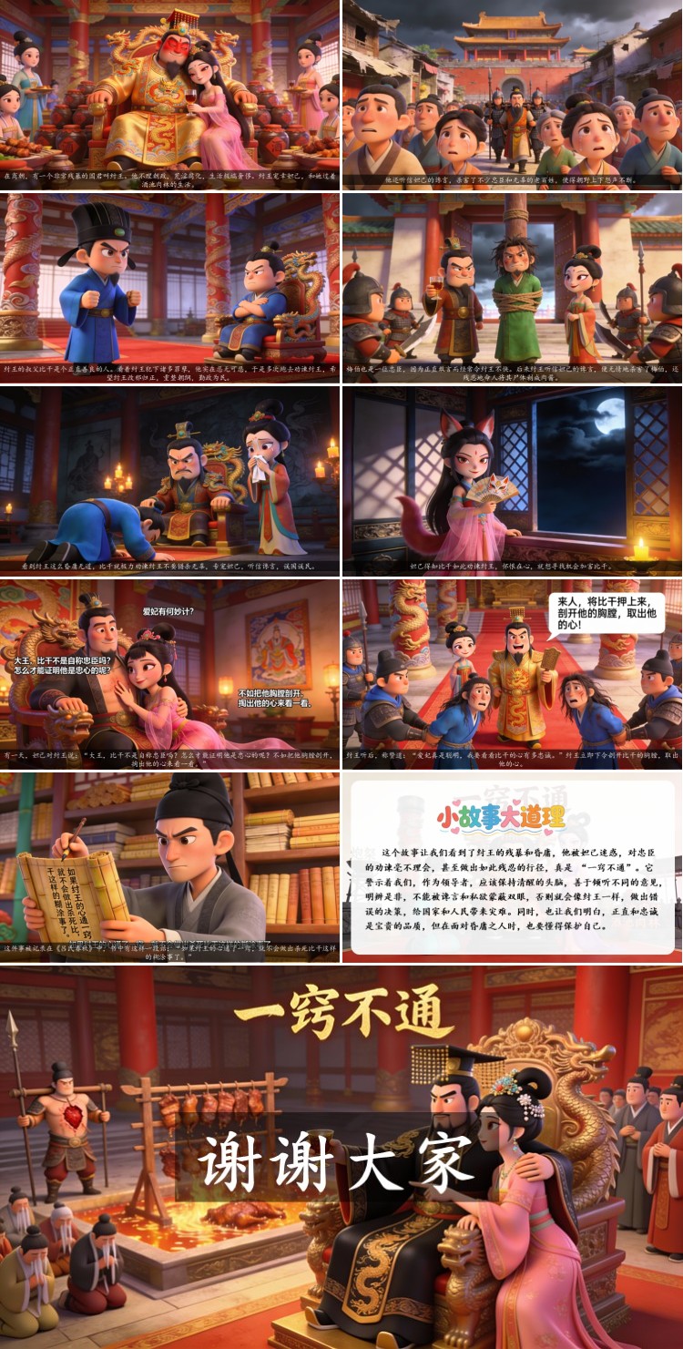 这个故事让我们看到了纣王的残暴和昏庸,他被妲己迷惑,对忠臣的劝谏毫不理会,甚至做出如此残忍的行径,真是 “一窍不通”。它警示着我们,作为领导者,应该保持清醒的头脑,善于倾听不同的意见,明辨是非,不能被谗言和私欲蒙蔽双眼,否则就会像纣王一样,做出错误的决策,给国家和人民带来灾难。同时,也让我们明白,正直和忠诚是宝贵的品质,但在面对昏庸之人时,也要懂得保护自己。