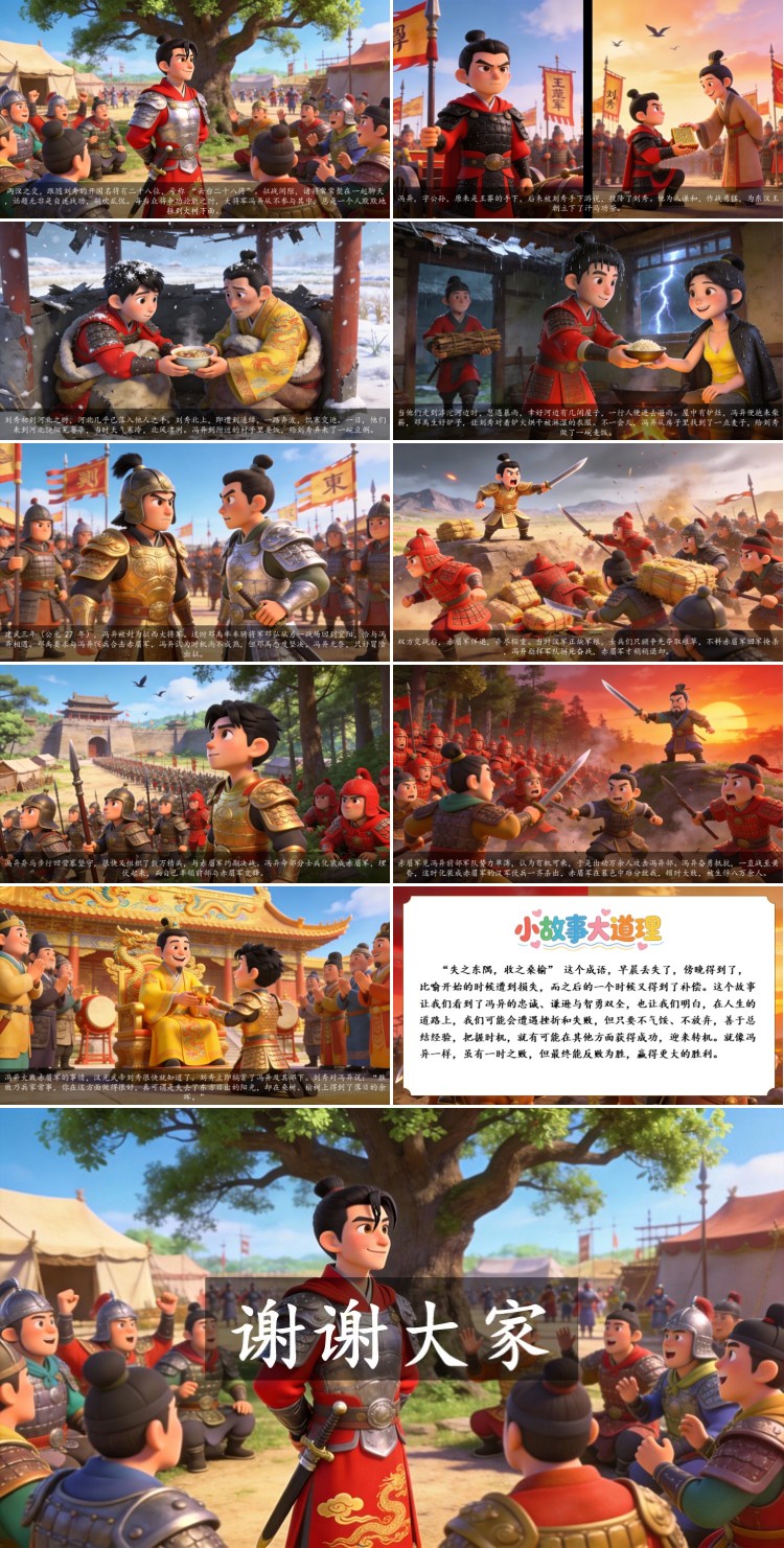 “失之东隅,收之桑榆” 这个成语,早晨丢失了,傍晚得到了,比喻开始的时候遭到损失,而之后的一个时候又得到了补偿。这个故事让我们看到了冯异的忠诚、谦逊与智勇双全,也让我们明白,在人生的道路上,我们可能会遭遇挫折和失败,但只要不气馁、不放弃,善于总结经验,把握时机,就有可能在其他方面获得成功,迎来转机。就像冯异一样,虽有一时之败,但最终能反败为胜,赢得更大的胜利。