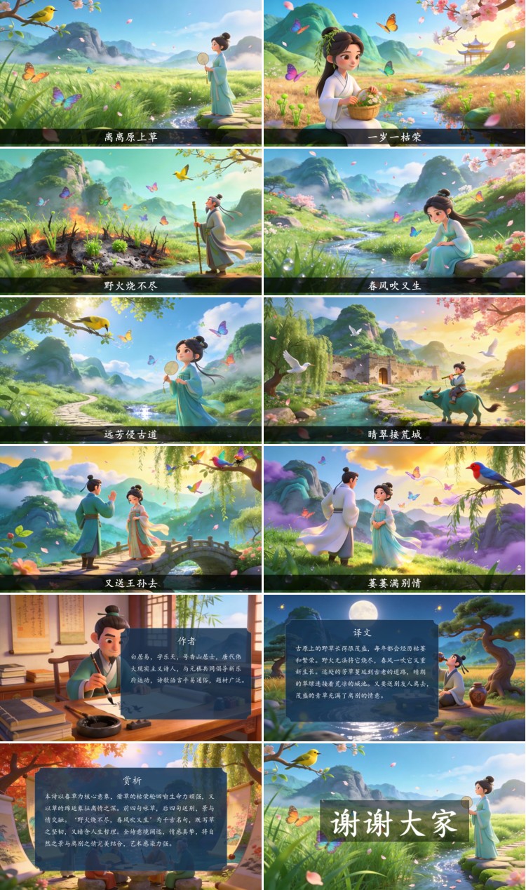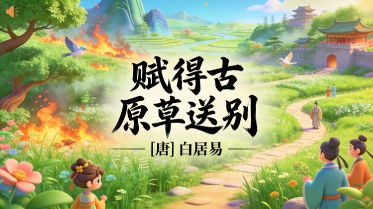 方舟绘本PPT首页 > 古诗 > 7-00084 《赋得古原草送别》古诗词PPT模板