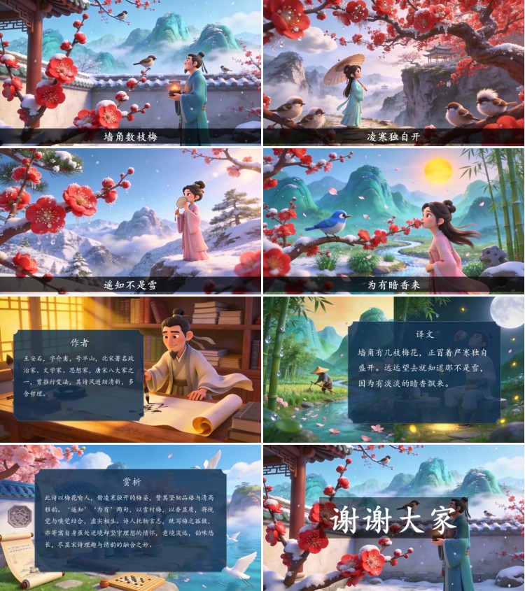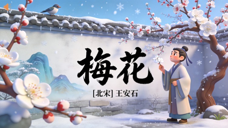 方舟绘本PPT首页 > 古诗 > 7-00089 《梅花》古诗词PPT模板