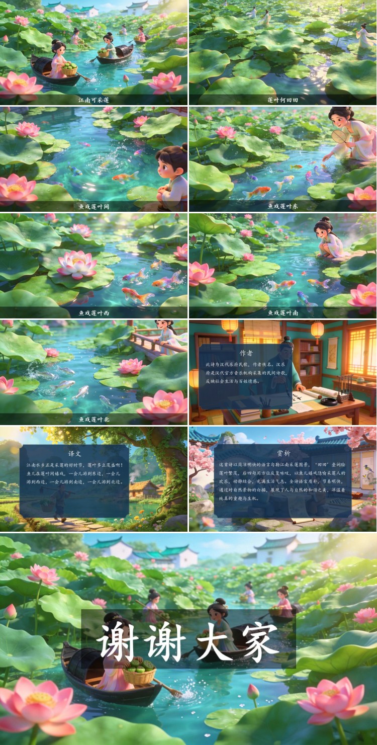 方舟绘本PPT首页 > 古诗 > 7-00092 《江南》古诗词PPT模板