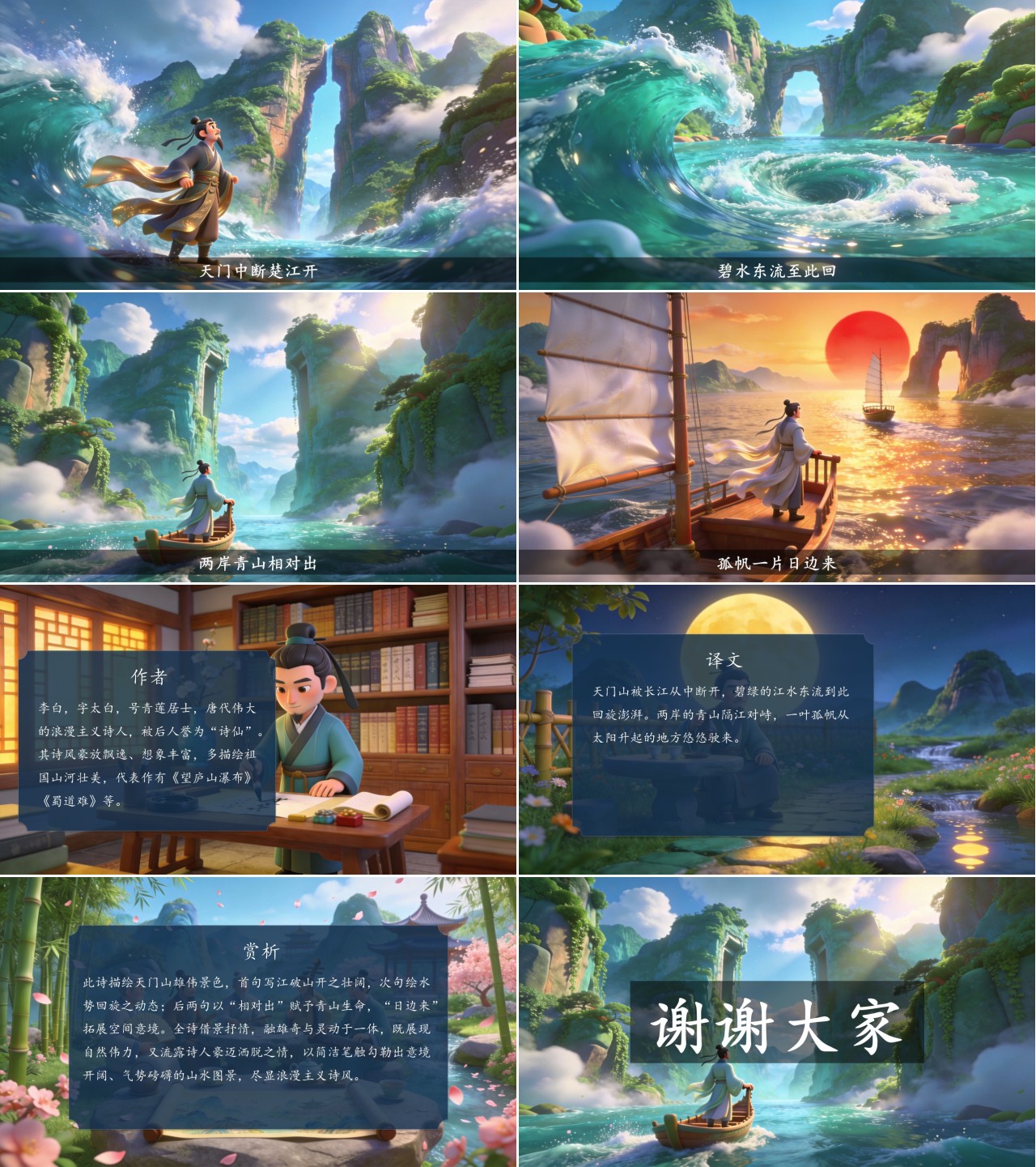 方舟绘本PPT首页 > 古诗 > 7-00107 《望天门山》古诗词PPT模板