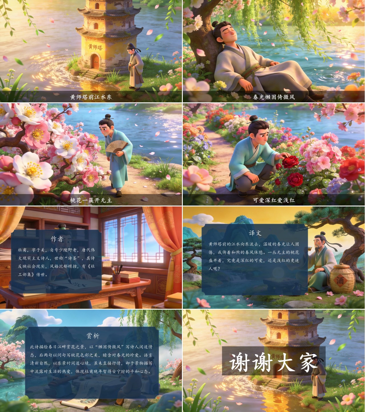方舟绘本PPT首页 > 古诗 > 7-00119 《江畔独步寻花(其五)》古诗词PPT模板
