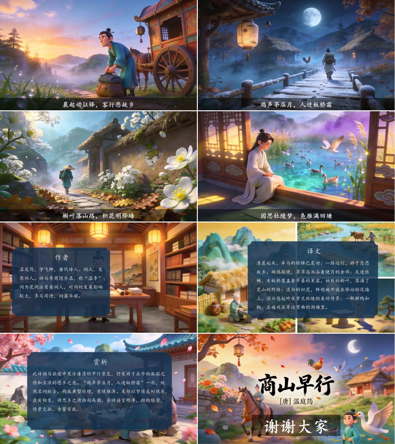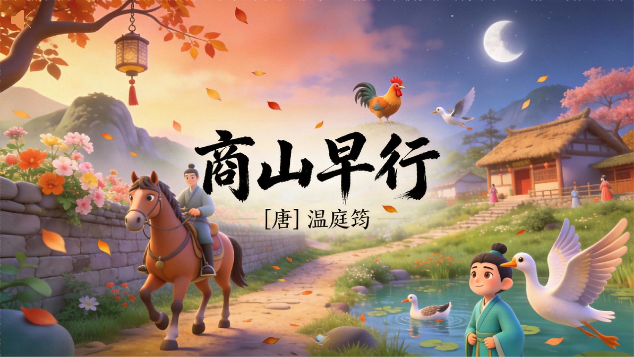 方舟绘本PPT首页 > 古诗 > 7-00127 《商山早行》古诗词PPT模板