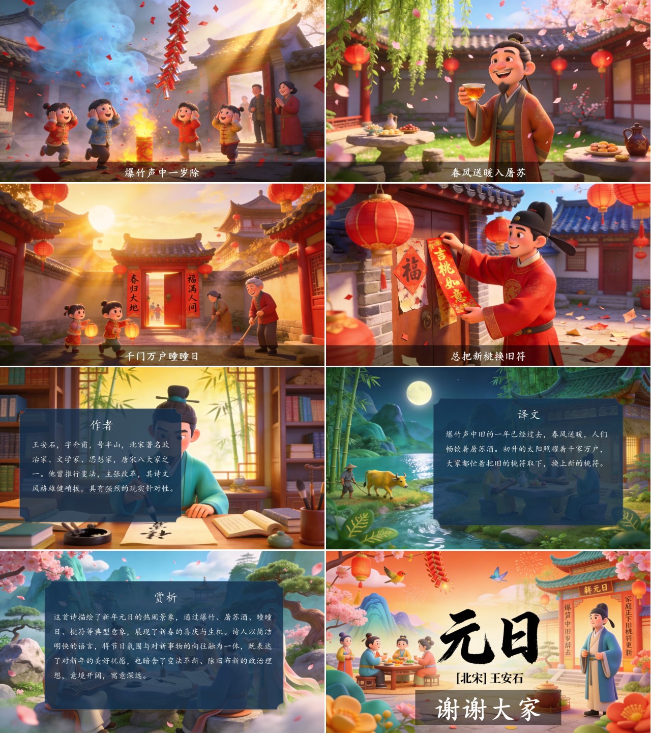 方舟绘本PPT首页 > 古诗 > 7-00130 《元日》古诗词PPT模板