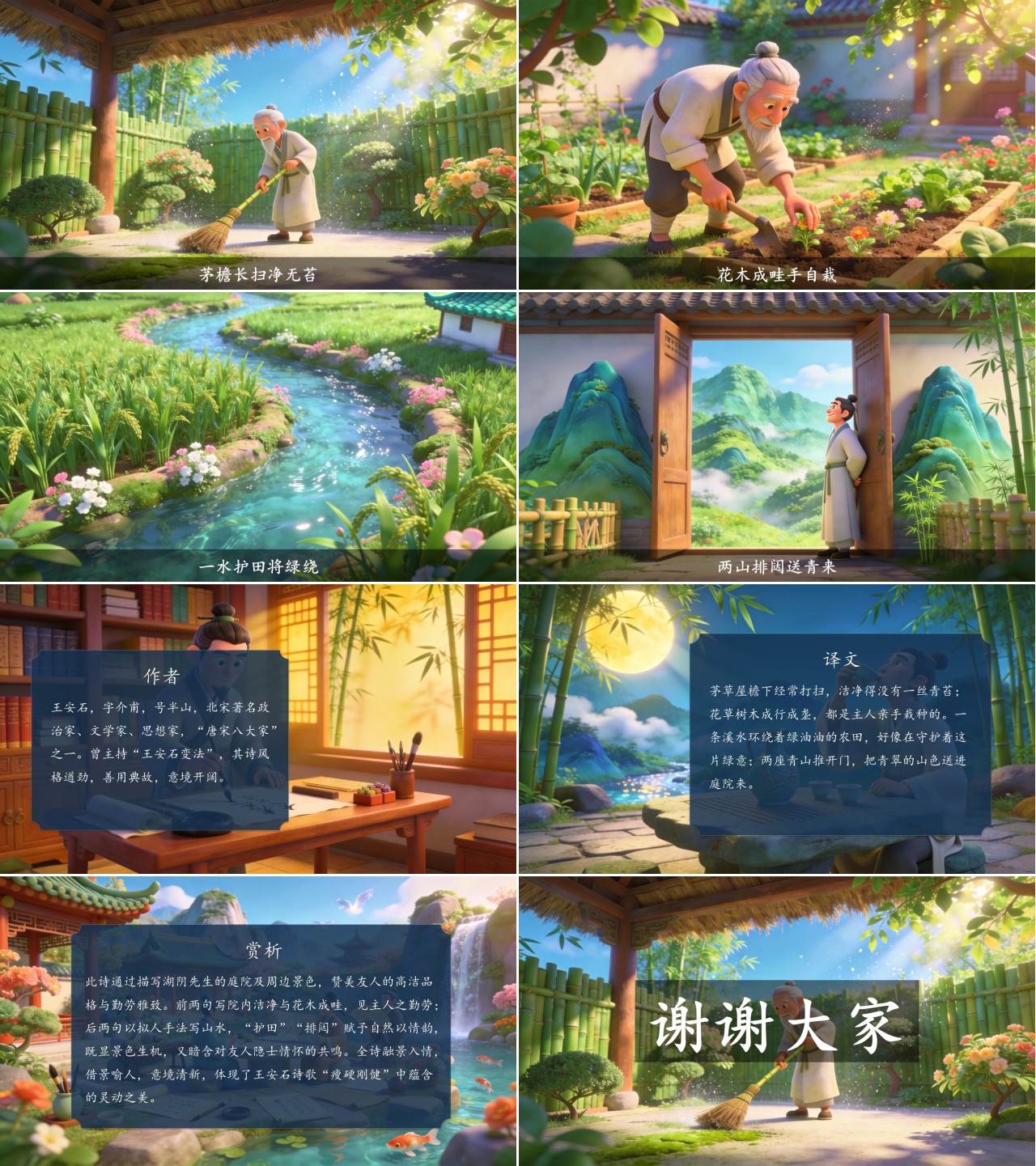 方舟绘本PPT首页 > 古诗 > 7-00132 《书湖阴先生壁》古诗词PPT模板
