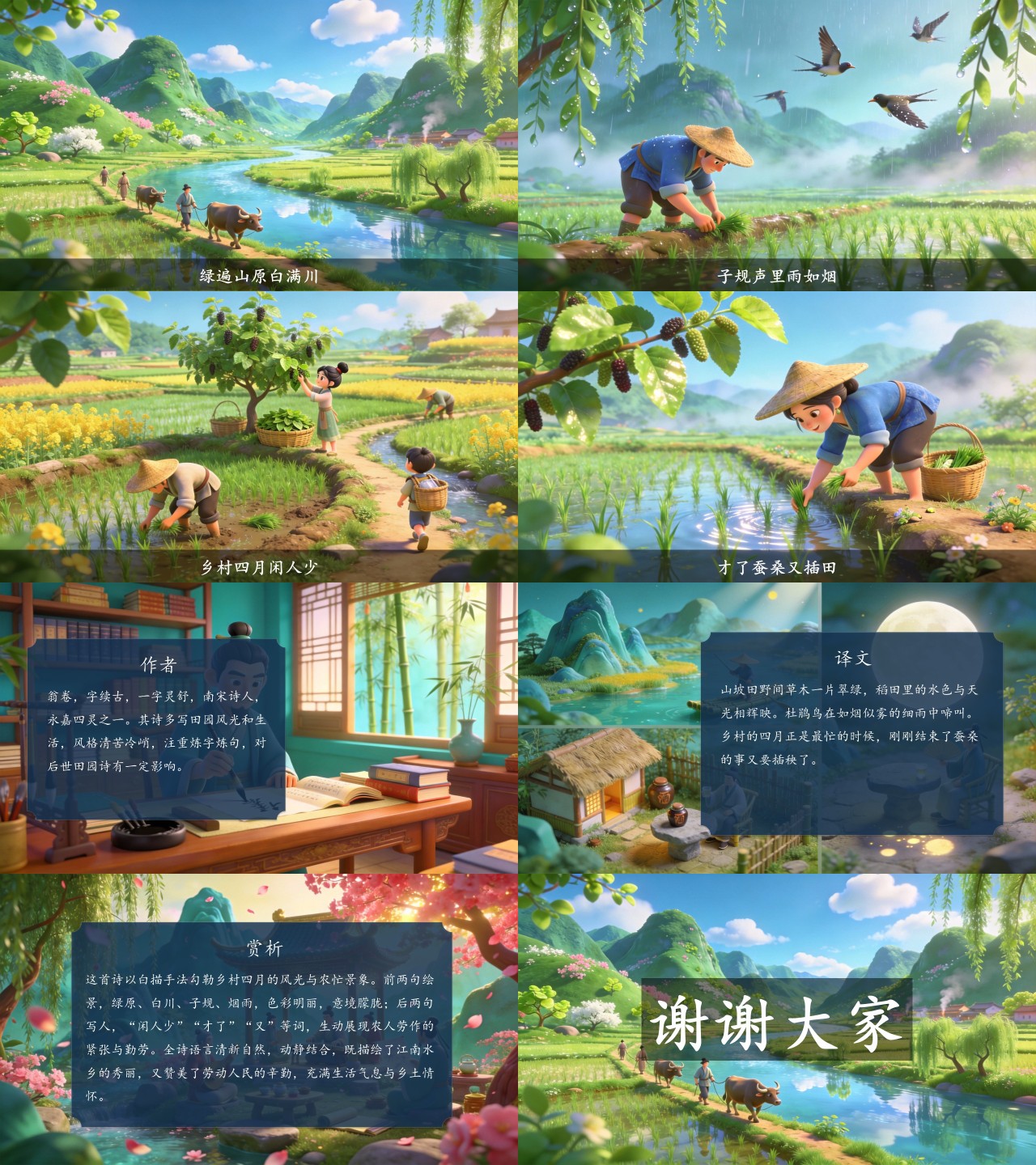 方舟绘本PPT首页 > 古诗 > 7-00145 《乡村四月》古诗词PPT模板