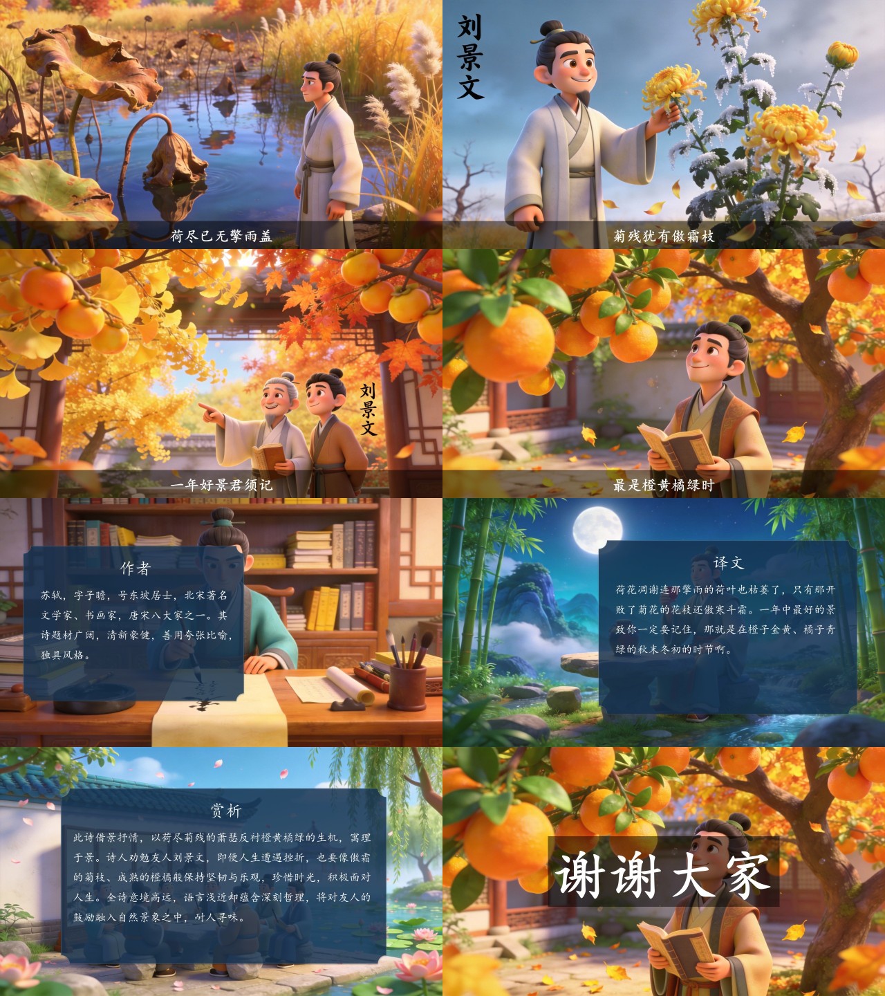 方舟绘本PPT首页 > 古诗 > 7-00151 《赠刘景文》古诗词PPT模板