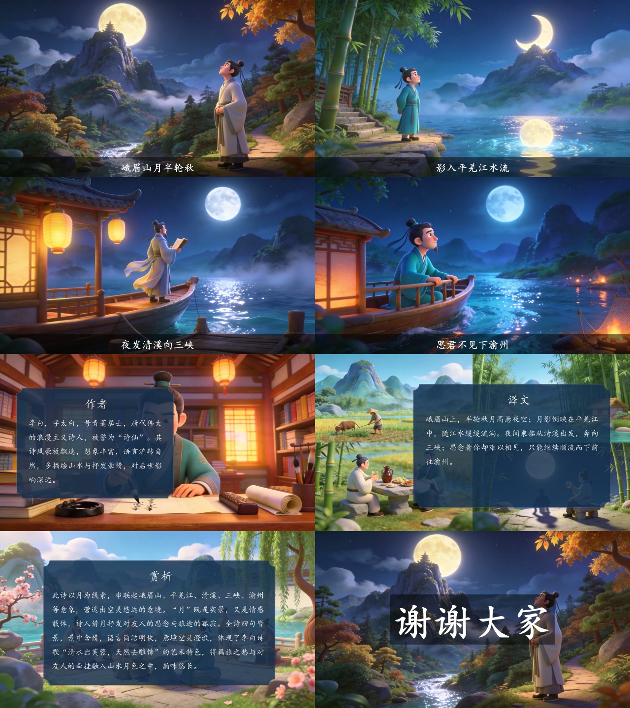 方舟绘本PPT首页 > 古诗 > 7-00156 《峨眉山月歌》古诗词PPT模板