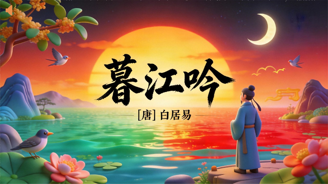 方舟绘本PPT首页 > 古诗 > 7-00171 《暮江吟》古诗词PPT模板