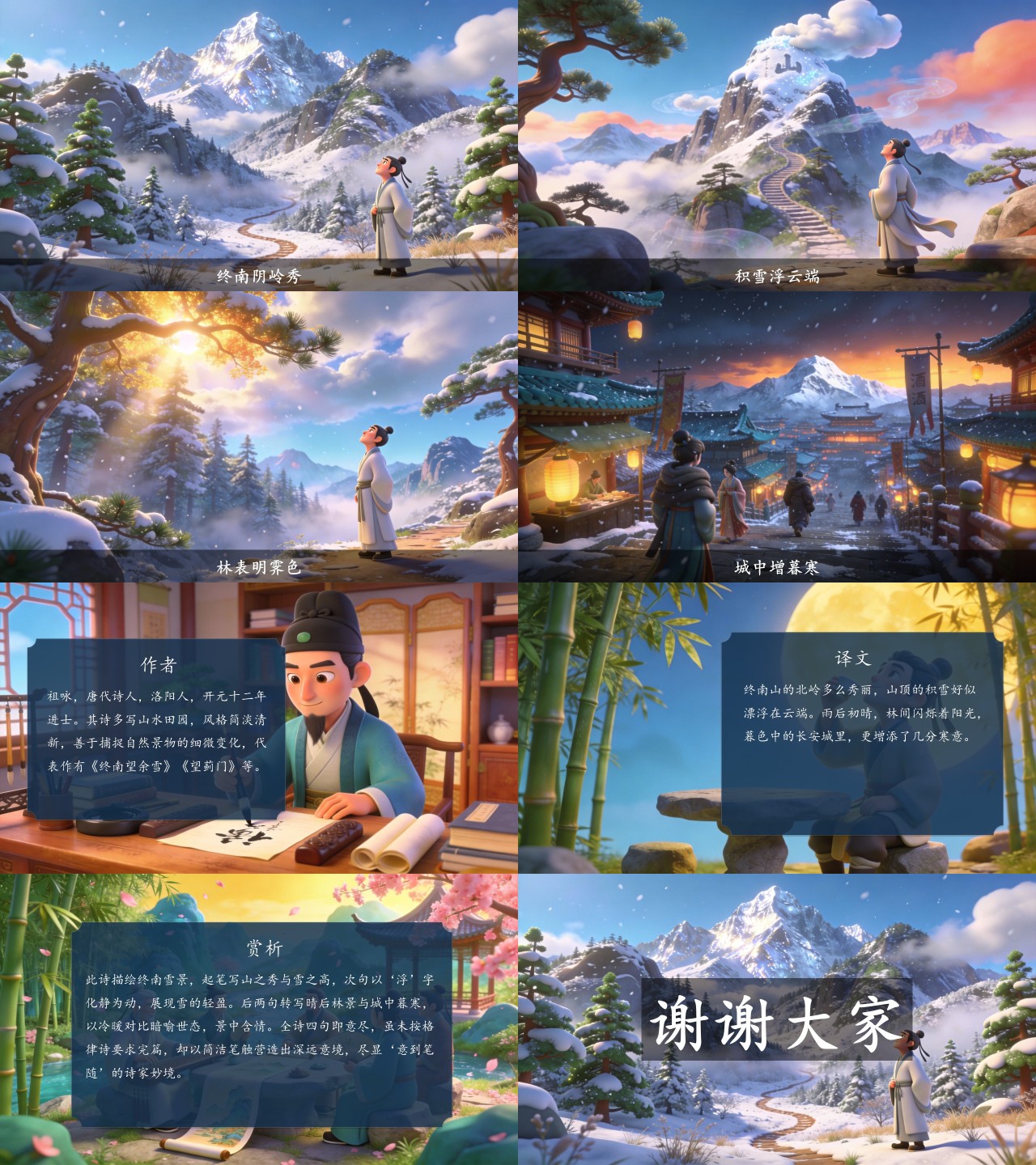 方舟绘本PPT首页 > 古诗 > 7-00172 《终南望余雪》古诗词PPT模板