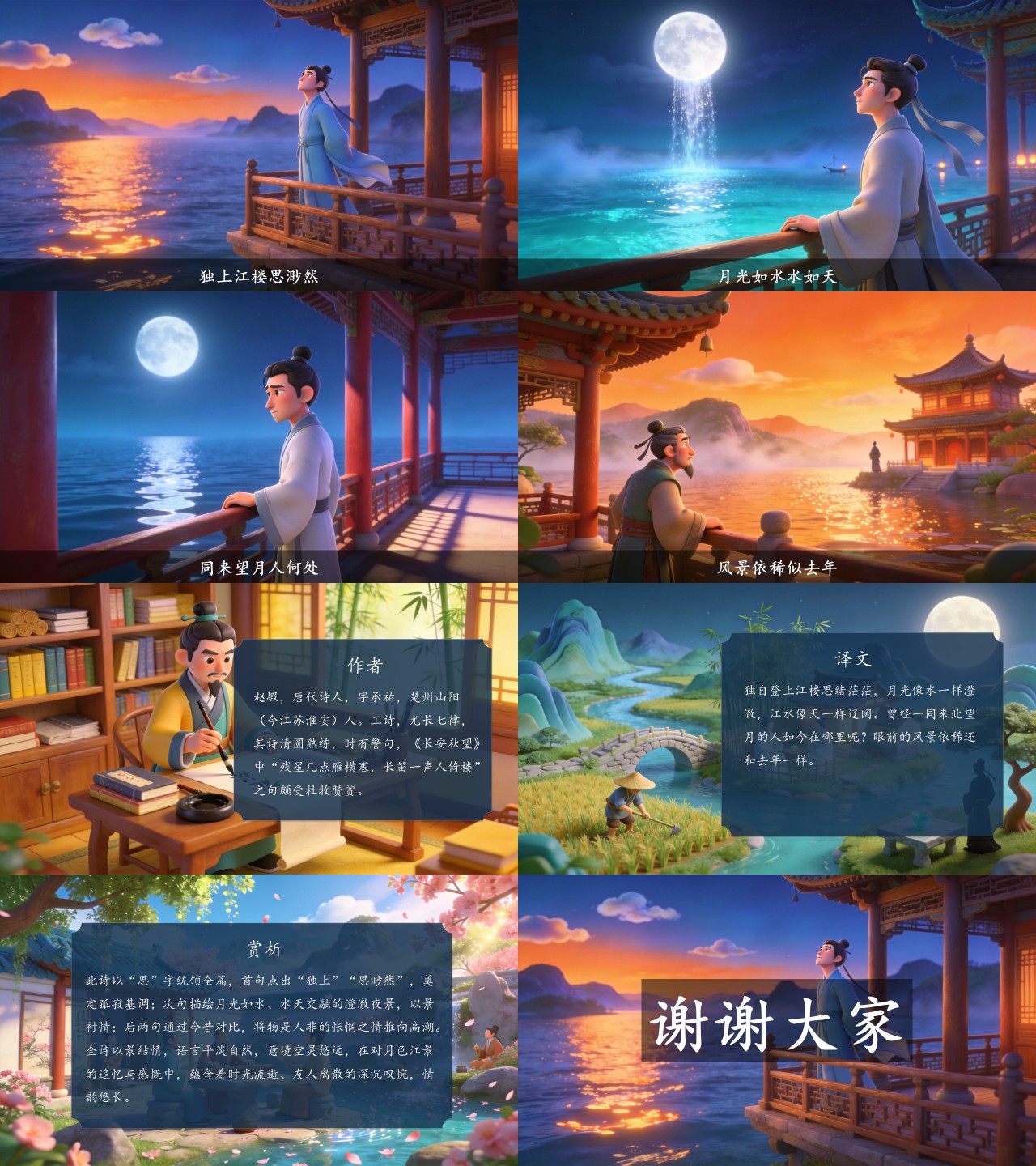 方舟绘本PPT首页 > 古诗 > 7-00178 《江楼感旧》古诗词PPT模板