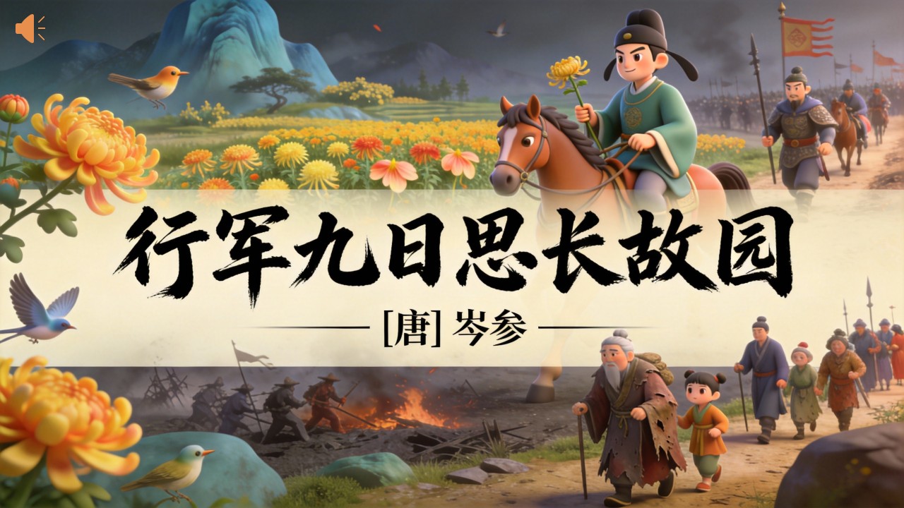 方舟绘本PPT首页 > 古诗 > 7-00179 《行军九日思长故园》古诗词PPT模板