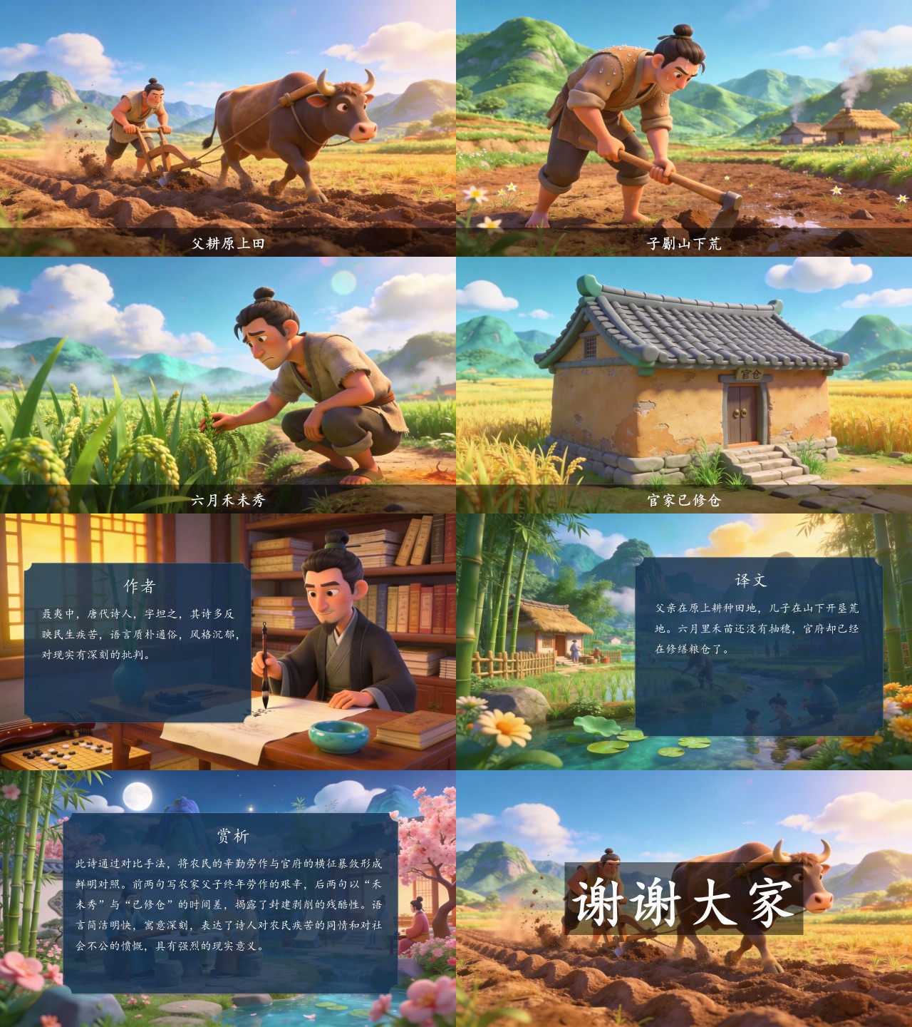 方舟绘本PPT首页 > 古诗 > 7-00200 《田家》古诗词PPT模板