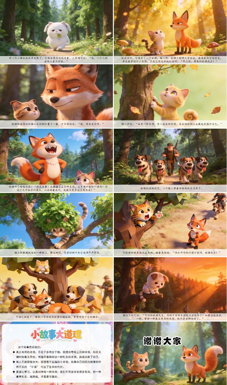 做人不能骄傲自大:狐狸看不起猫的小本领,结果自己却因为傲慢和华而不实的 “计谋” 付出了生命的代价。