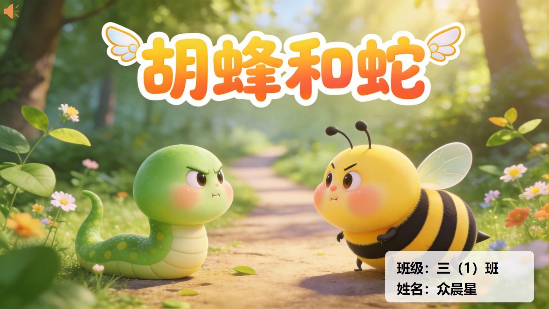 大家好!我是三年级一班的众晨星,今天我要和大家分享一个充满冲击力的寓言故事 ——《胡蜂和蛇》。