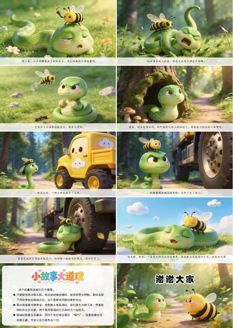 不要被愤怒冲昏头脑:蛇在被胡蜂折磨时,被愤怒完全控制,最终选择了两败俱伤的极端方式,这不是解决问题的最好办法。