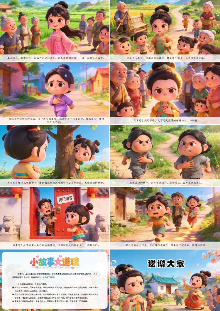 今天我给大家讲的是一个非常经典的寓言故事 ——《丑女效颦》。