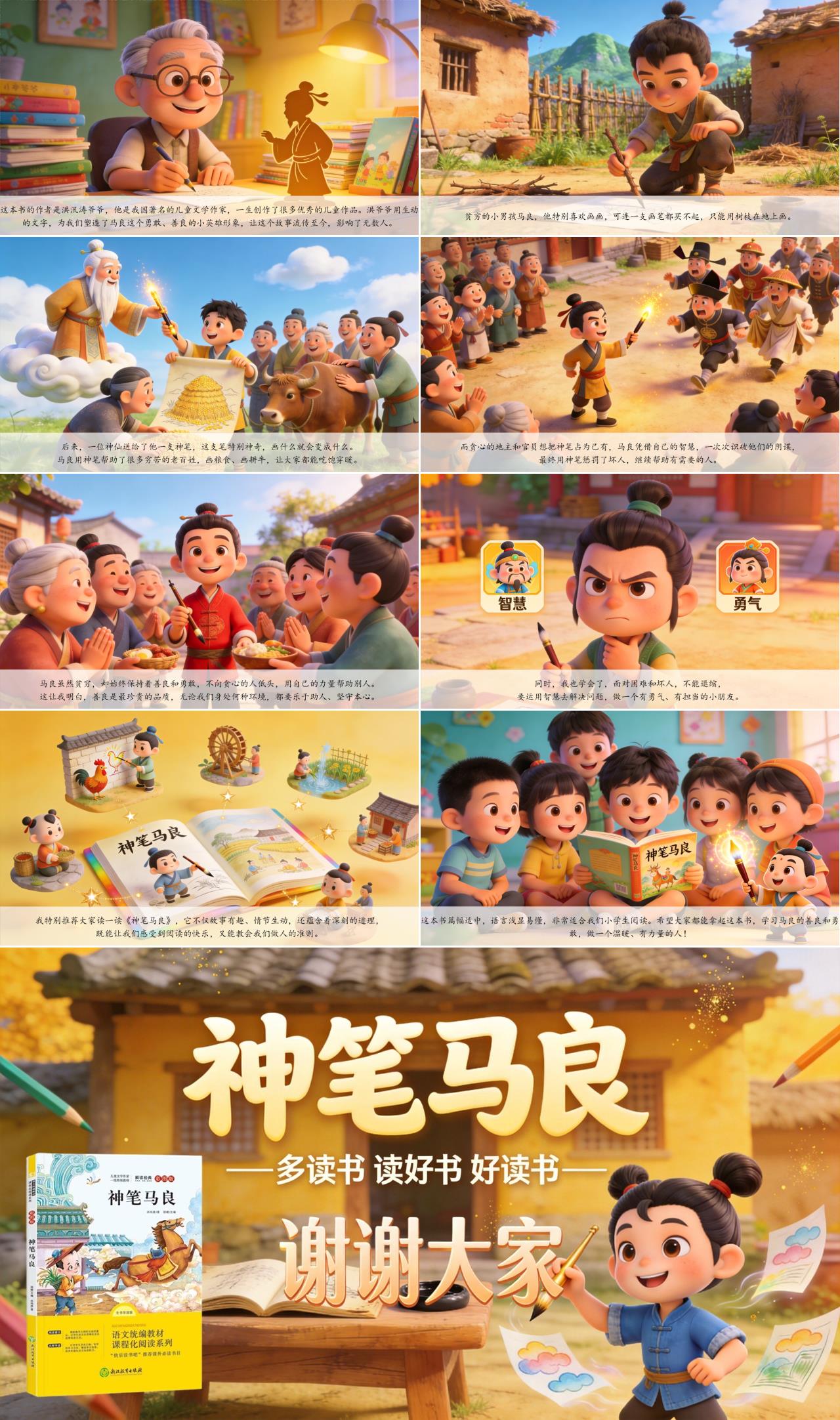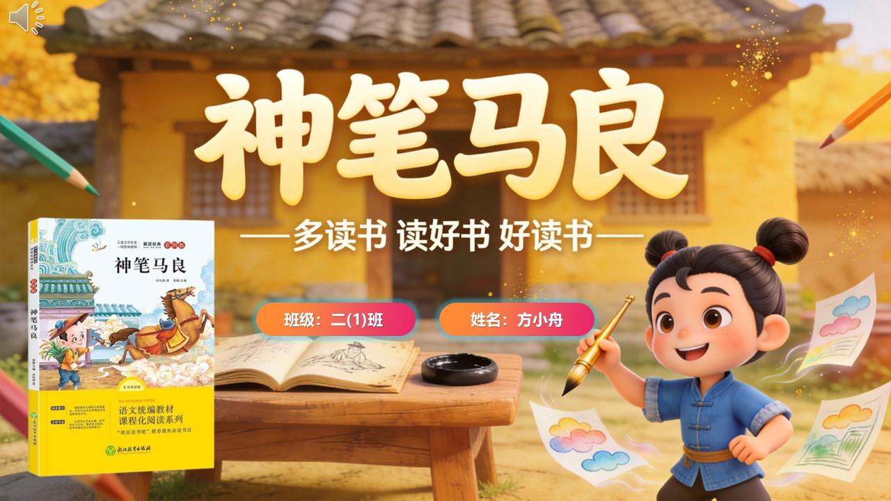 我特别推荐大家读一读《神笔马良》,它不仅故事有趣、情节生动,还蕴含着深刻的道理,既能让我们感受到阅读的快乐,又能教会我们做人的准则。这本书篇幅适中,语言浅显易懂,非常适合我们小学生阅读。希望大家都能拿起这本书,学习马良的善良和勇敢,做一个温暖、有力量的人!我的分享完毕,谢谢大家!