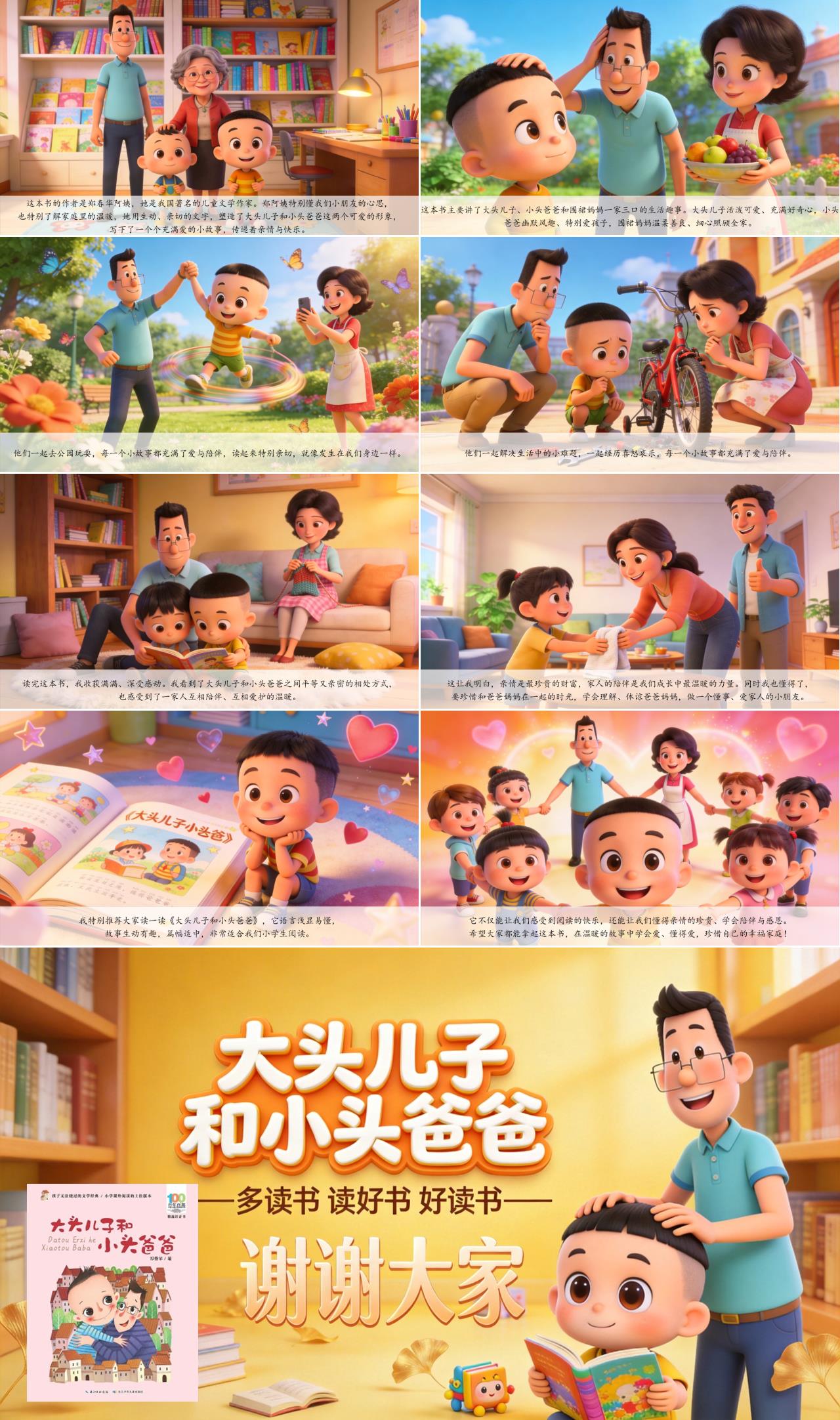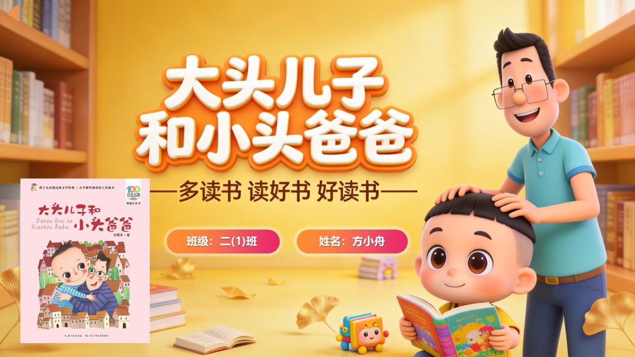 尊敬的老师、亲爱的同学们,大家好!今天,我要给大家分享一本家喻户晓的好书——《大头儿子和小头爸爸》。这本书里的故事温暖又有趣,藏着浓浓的亲情,陪伴了很多小朋友长大,相信你们一定会喜欢。
