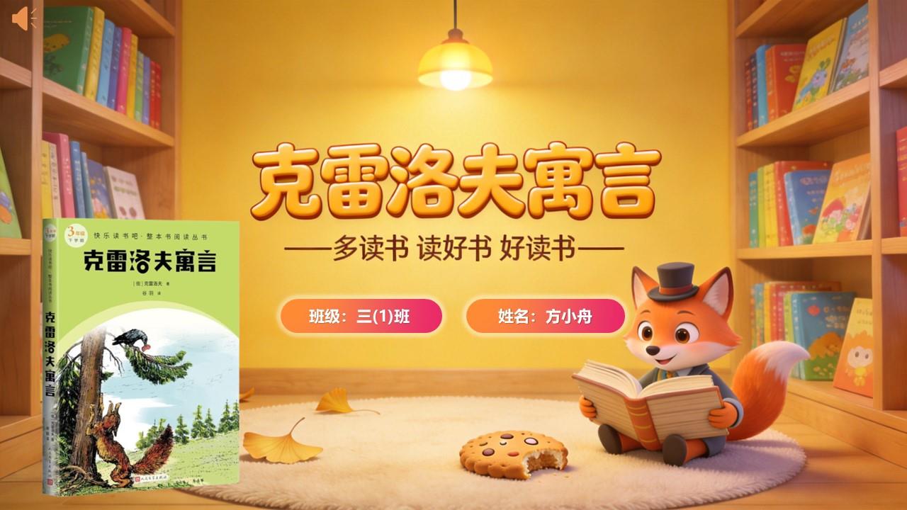 尊敬的老师、亲爱的同学们,大家好!今天,我要给大家分享一本享誉世界的经典好书——《克雷洛夫寓言》。它就像一座智慧的宝库,每一个短小精悍的故事里,都藏着深刻的人生哲理,既能让我们感受到阅读的快乐,又能教会我们做人做事的道理,特别适合我们小学生阅读。