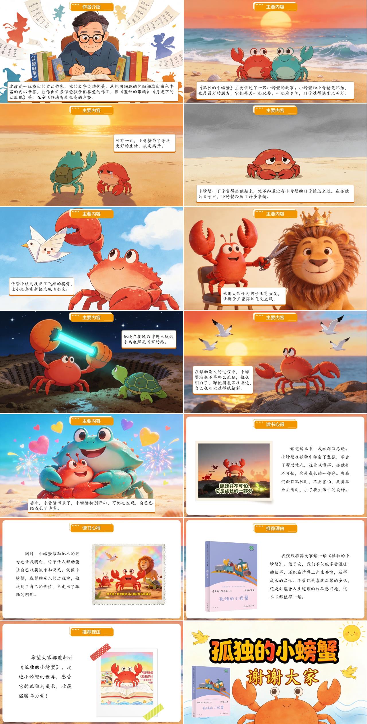 希望大家都能翻开《孤独的小螃蟹》,走进小螃蟹的世界,感受它的孤独与成长,收获温暖与力量!