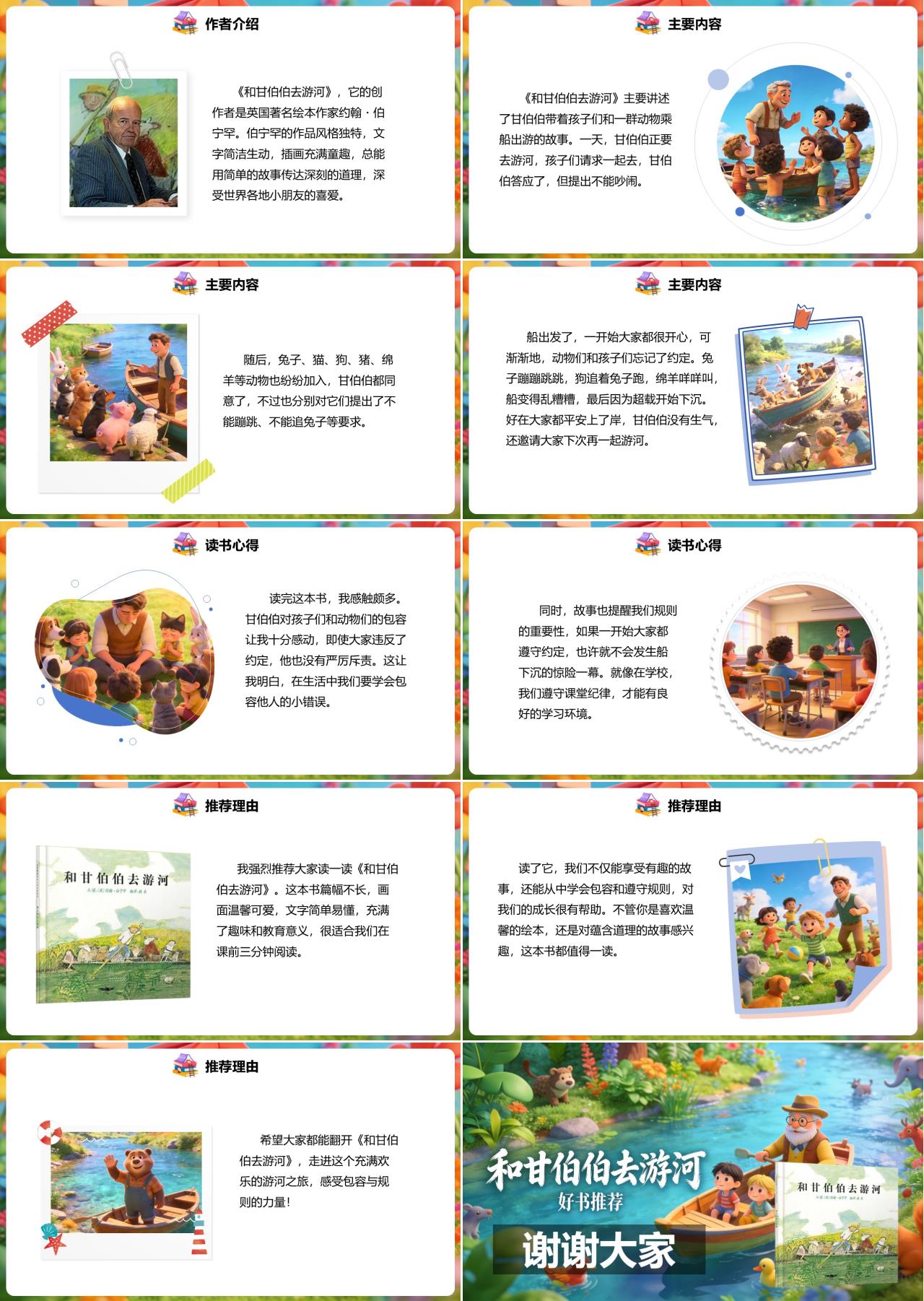 大家好!今天我要分享一本充满欢乐与温暖的绘本 ——《和甘伯伯去游河》,它的创作者是英国著名绘本作家约翰・伯宁罕。伯宁罕的作品风格独特,文字简洁生动,插画充满童趣,总能用简单的故事传达深刻的道理,深受世界各地小朋友的喜爱。