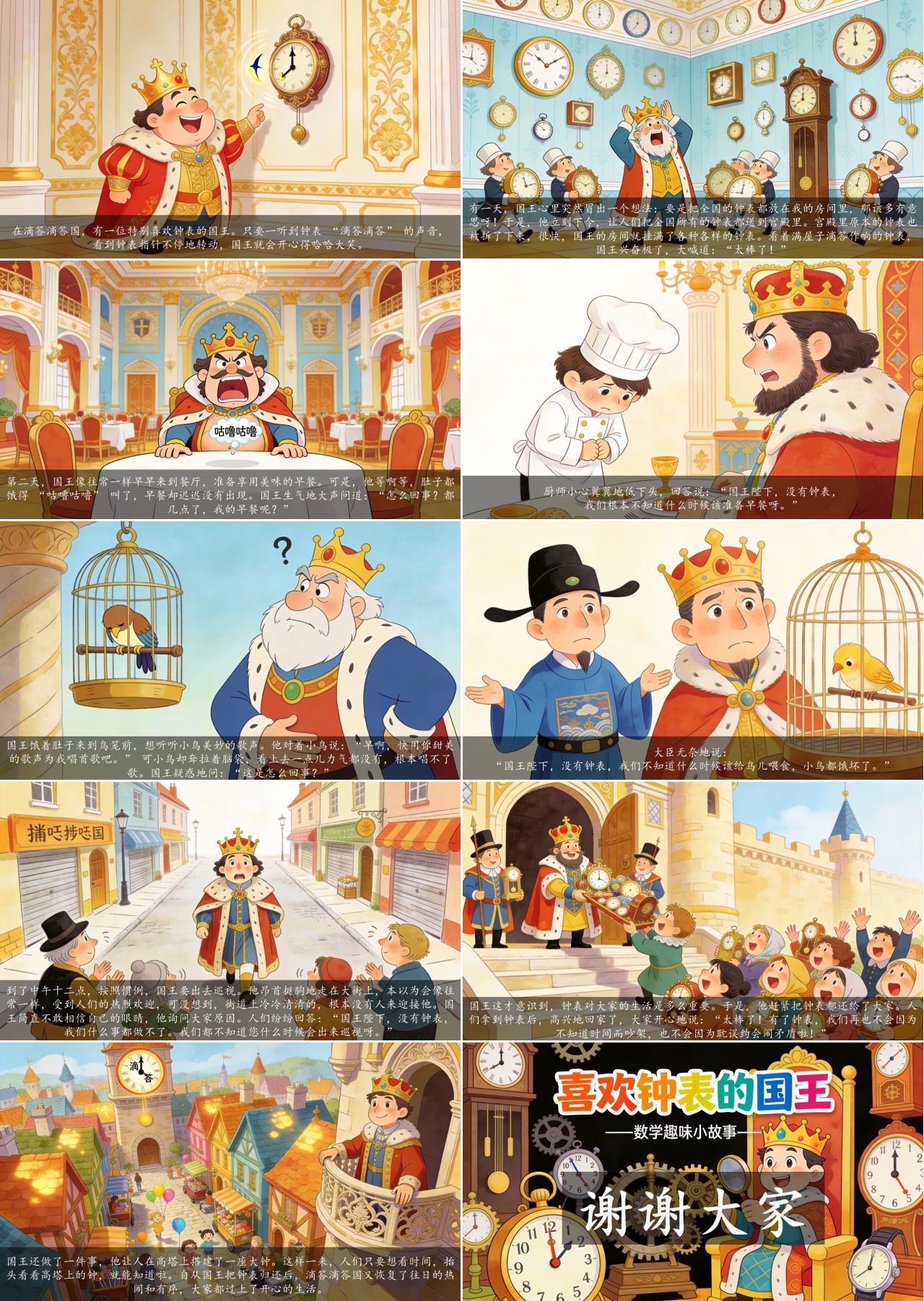 在滴答滴答国,有一位特别喜欢钟表的国王。只要一听到钟表 “滴答滴答” 的声音,看到钟表指针不停地转动,国王就会开心得哈哈大笑。