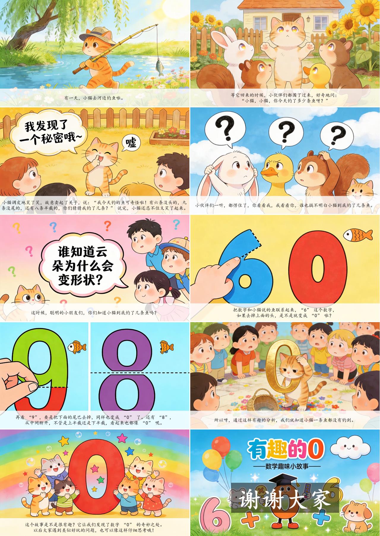 所以呀,通过这样有趣的分析,我们就知道小猫一条鱼都没有钓到。这个故事是不是很有趣?它让我们发现了数字 “0” 的奇妙之处。以后大家遇到类似好玩的问题,也可以像这样仔细思考哦!
