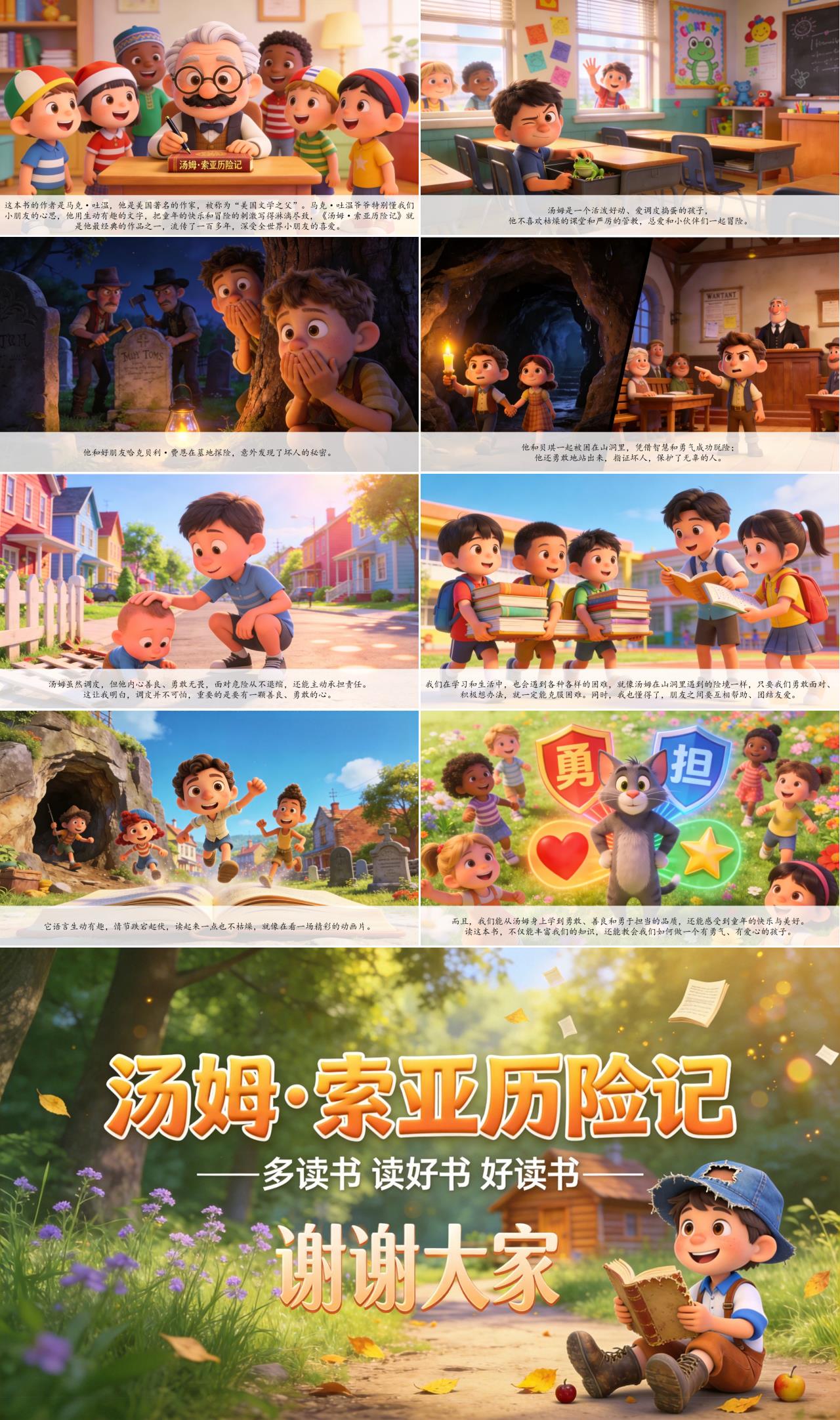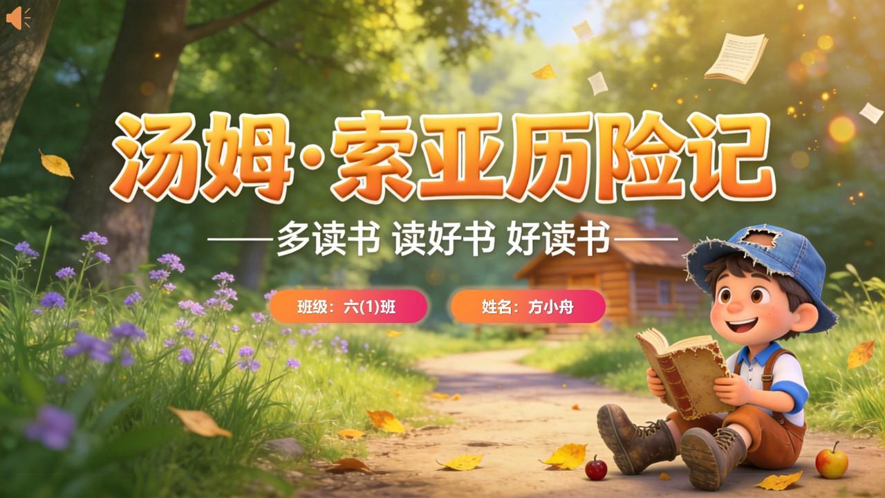 尊敬的老师、亲爱的同学们,大家好!今天,我要给大家分享一本充满童趣和勇气的好书——《汤姆·索亚历险记》。它就像一场精彩的冒险之旅,不仅有好玩的故事情节,还藏着很多成长的道理,特别适合我们小学生阅读,读完让人回味无穷。