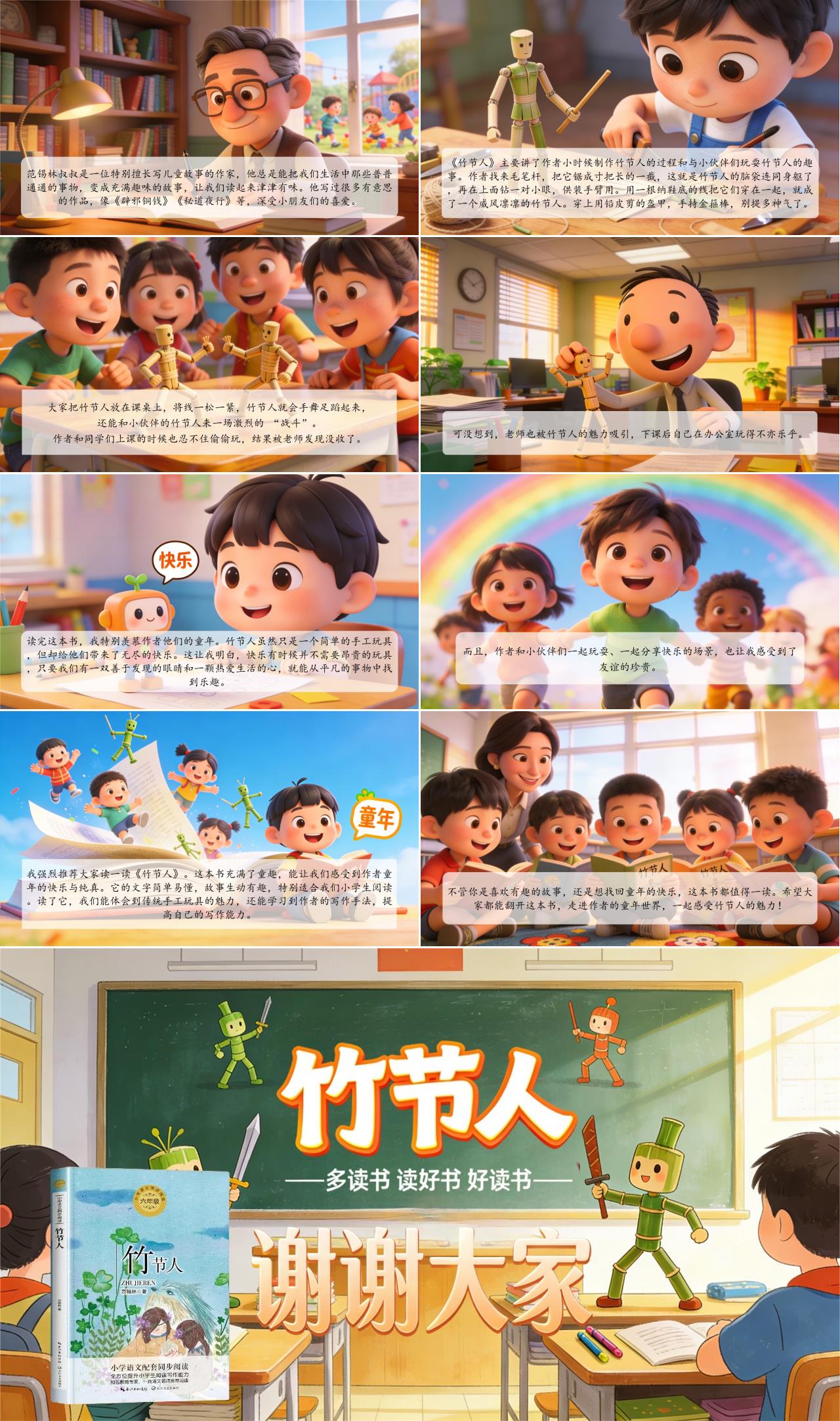 大家好!今天我要给大家分享一本超有趣的书,叫《竹节人》,作者是范锡林。范锡林叔叔是一位特别擅长写儿童故事的作家,他总是能把我们生活中那些普普通通的事物,变成充满趣味的故事,让我们读起来津津有味。他写过很多有意思的作品,像《辟邪铜钱》《秘道夜行》等,深受小朋友们的喜爱。