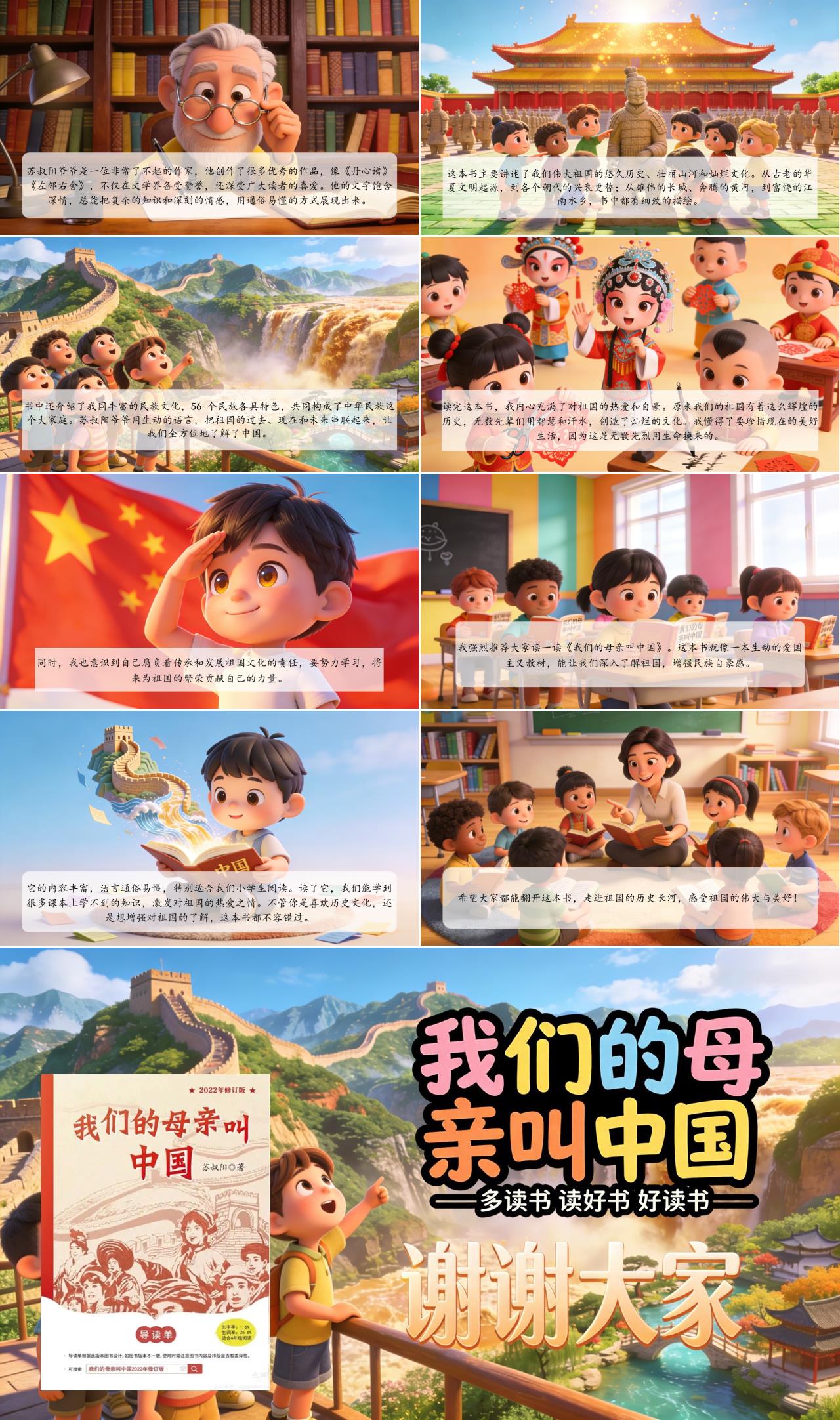 大家好!今天我要给大家分享一本意义非凡的书,叫《我们的母亲叫中国》,作者是苏叔阳。苏叔阳爷爷是一位非常了不起的作家,他创作了很多优秀的作品,像《丹心谱》《左邻右舍》,不仅在文学界备受赞誉,还深受广大读者的喜爱。他的文字饱含深情,总能把复杂的知识和深刻的情感,用通俗易懂的方式展现出来。