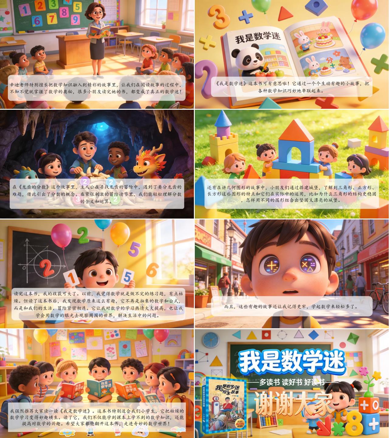 《我是数学迷》这本书可有意思啦!它通过一个个生动有趣的小故事,把各种数学知识巧妙地串联起来。比如说,在《龙齿的分数》这个故事里,主人公在寻找龙齿的冒险中,遇到了要分龙齿的难题,借此引出了分数的概念。像怎么把一堆龙齿平均分给不同数量的人,不同的分法对应的分数是多少,让我们在紧张刺激的冒险情节里,轻松理解了分数的含义和运算。还有在讲几何图形的故事中,小朋友们通过搭建城堡,了解到三角形、正方形、长方形这些图形的特点和它们在实际中的运用,比如为什么三角形的结构更稳固,怎样用不同的图形组合出坚固又漂亮的城堡。书里的故事丰富多彩,每个故事都藏着数学知识,让我们在欢乐中学习数学。