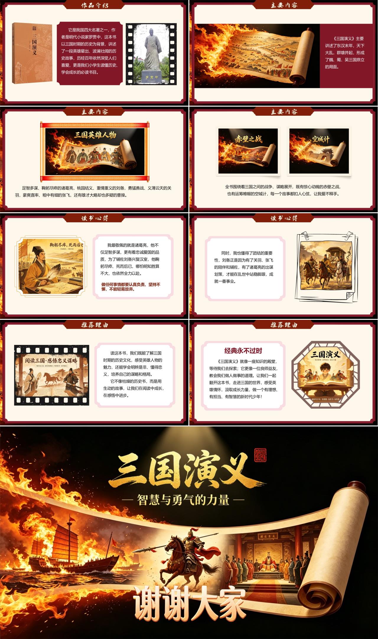 今天,我要和大家分享一本流传千古的经典名著——《三国演义》。它是我国四大名著之一,作者是明代小说家罗贯中,这本书以三国时期的历史为背景,讲述了一段英雄辈出、波澜壮阔的历史故事,历经百年依然深受人们喜爱,更是我们小学生读懂历史、学会成长的必读书目。