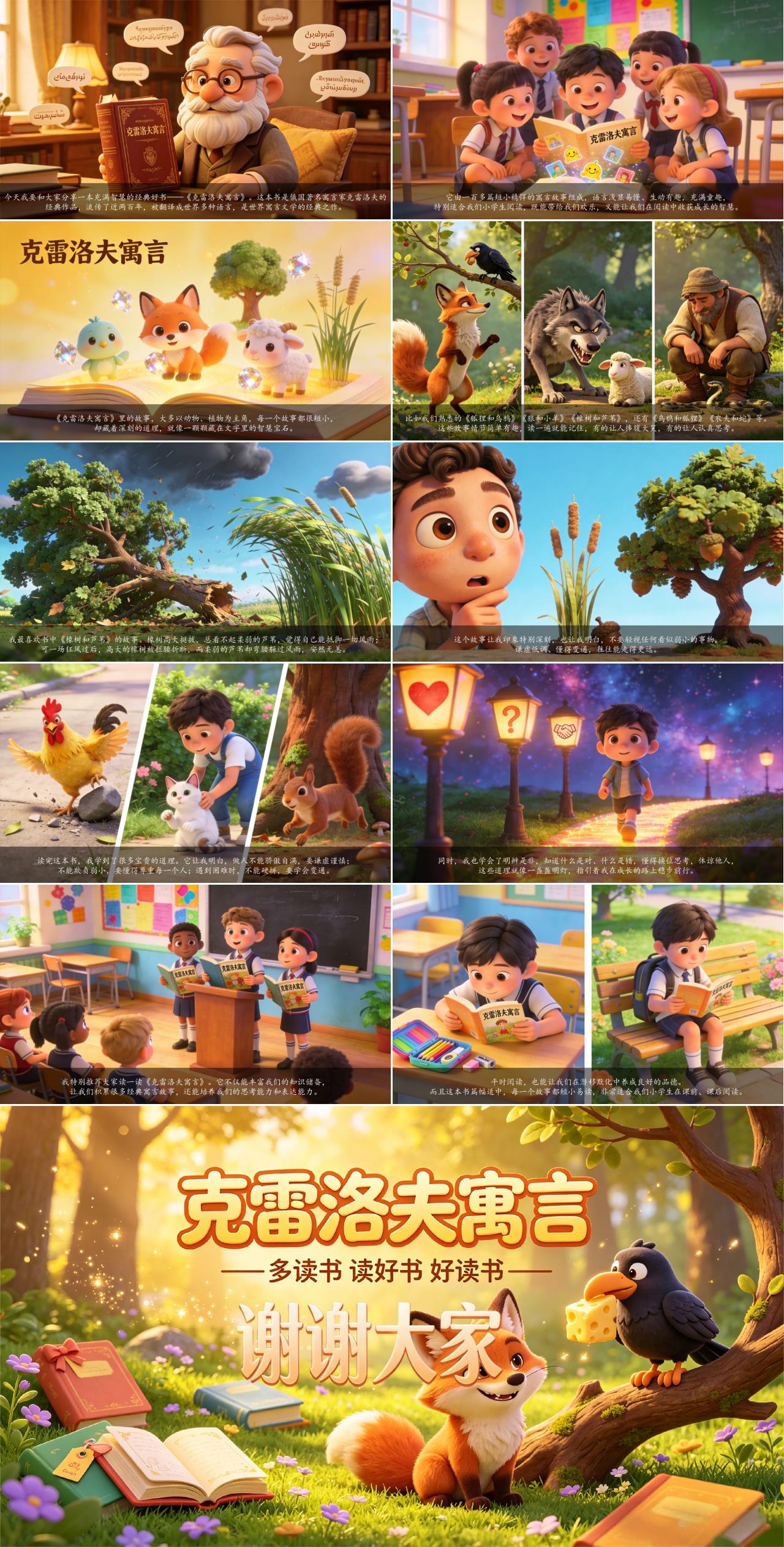 大家好!今天我要和大家分享一本充满智慧的经典好书——《克雷洛夫寓言》。这本书是俄国著名寓言家克雷洛夫的经典作品,流传了近两百年,被翻译成世界多种语言,是世界寓言文学的经典之作。它由一百多篇短小精悍的寓言故事组成,语言浅显易懂、生动有趣,充满童趣,特别适合我们小学生阅读,既能带给我们欢乐,又能让我们在阅读中收获成长的智慧。