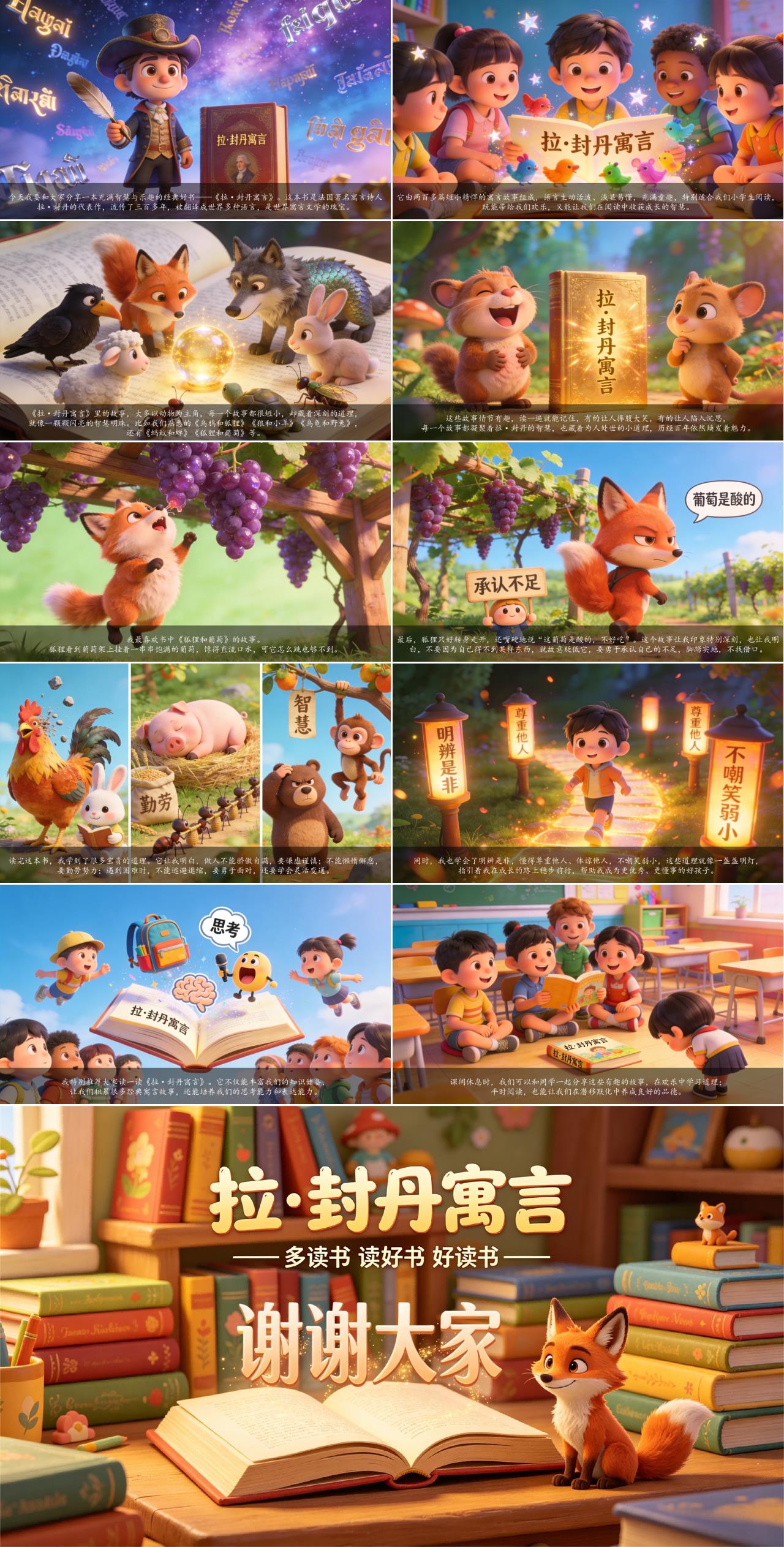 大家好!今天我要和大家分享一本充满智慧与乐趣的经典好书——《拉·封丹寓言》。这本书是法国著名寓言诗人拉·封丹的代表作,流传了三百多年,被翻译成世界多种语言,是世界寓言文学的瑰宝。它由两百多篇短小精悍的寓言故事组成,语言生动活泼、浅显易懂,充满童趣,特别适合我们小学生阅读,既能带给我们欢乐,又能让我们在阅读中收获成长的智慧。