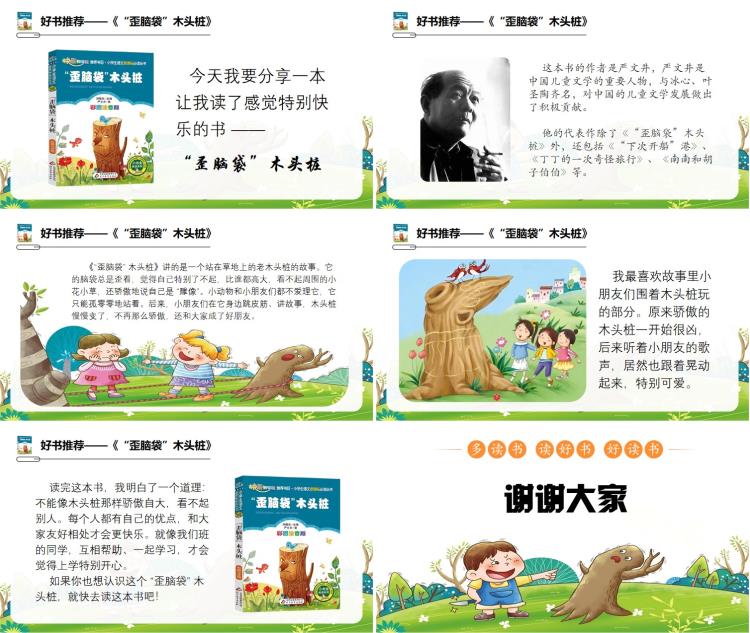 多读书,读好书,好读书,大家好!我是二年级一班的众晨星,今天我要分享一本让我读了感觉特别快乐的书 ——《“歪脑袋” 木头桩》。