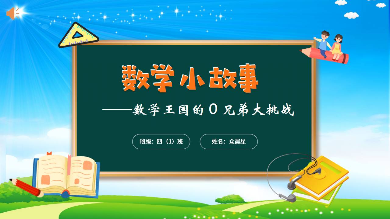 大家好!我是四(1)班的众晨星。今天我要给大家讲的是《数学王国的 "0" 兄弟大挑战》!