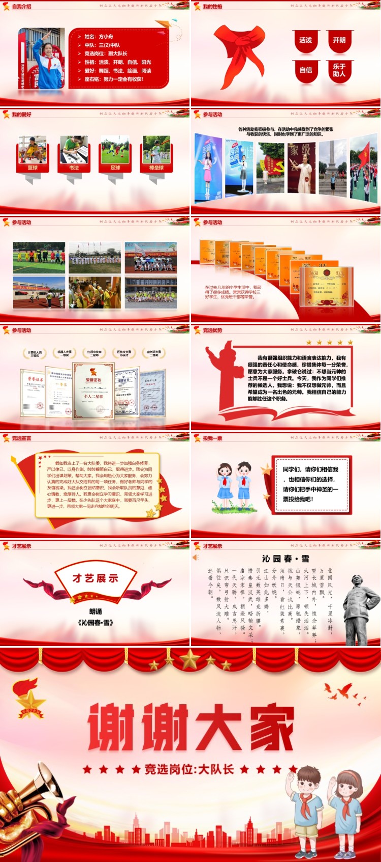 大家好!我是六(3)中队的方小舟。